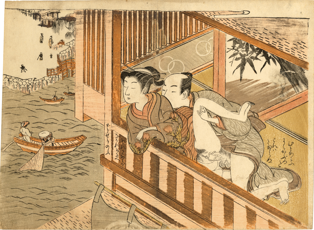 湖龍斎は春信が活躍していた時代は、春信の影響を受けた作品を多く制作した。安永年間に入ると現実の肉体を感じさせるたっぷりとした姿態をもたせた独自の画風を確立した。「雛形若菜の初模様」のシリーズでは大判を採用し、以後大判が錦絵の基本となった。
