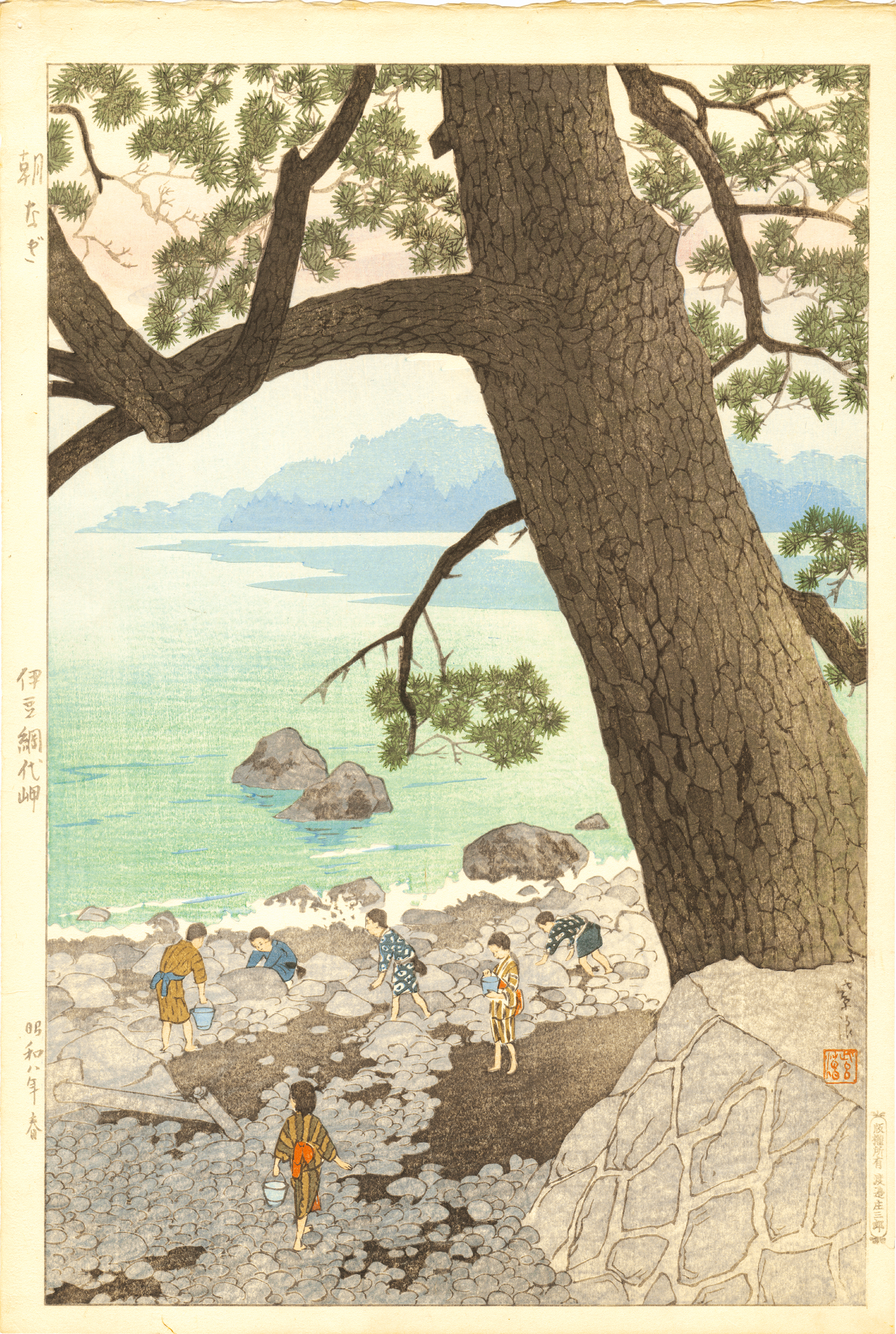 笠松紫浪は清方の門人で、大正8年に渡辺版画店から新版画「青嵐」を第一作として発表、昭和16年までに数10点の木版画を制作、新版画の旗手として活躍している。昭和27年から昭和35年には芸艸堂から風景版画100点近くを発表した。
