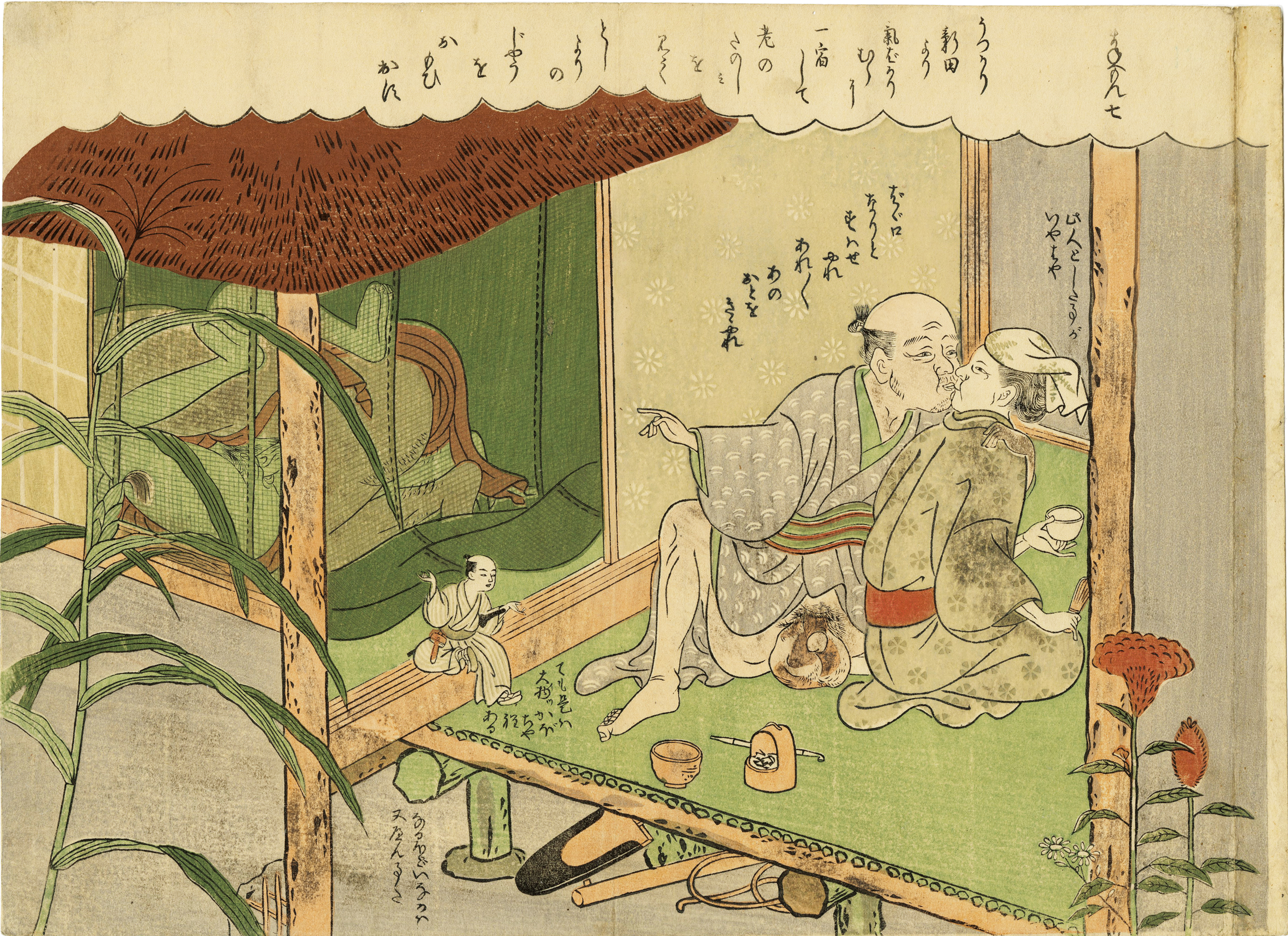 Suzuki Harunobu was an innovator, the first to produce full-color prints in 1765, rendering obsolete the former modes of two- and three-color prints. Harunobu used many special techniques and depicted various subjects, from classical poems to contemporary beauties. Like many artists of his day, Harunobu also produced a lot of shunga. During his lifetime and shortly afterward, many artists imitated his style.