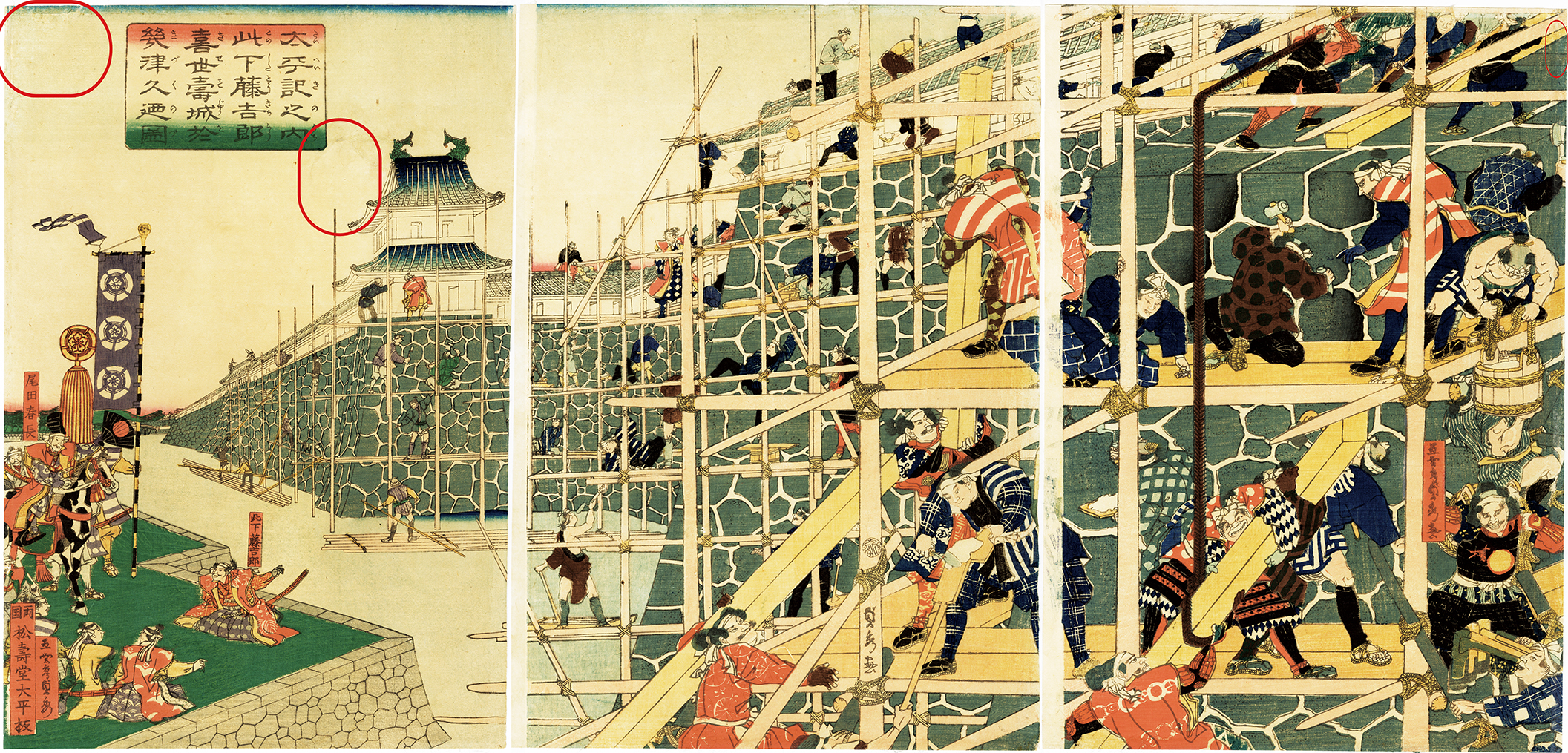 Sadahide / Kinoshita Tokichiro (Toyotomi Hideyoshi) is Constructing Kiyosu Castle from Taihei-ki