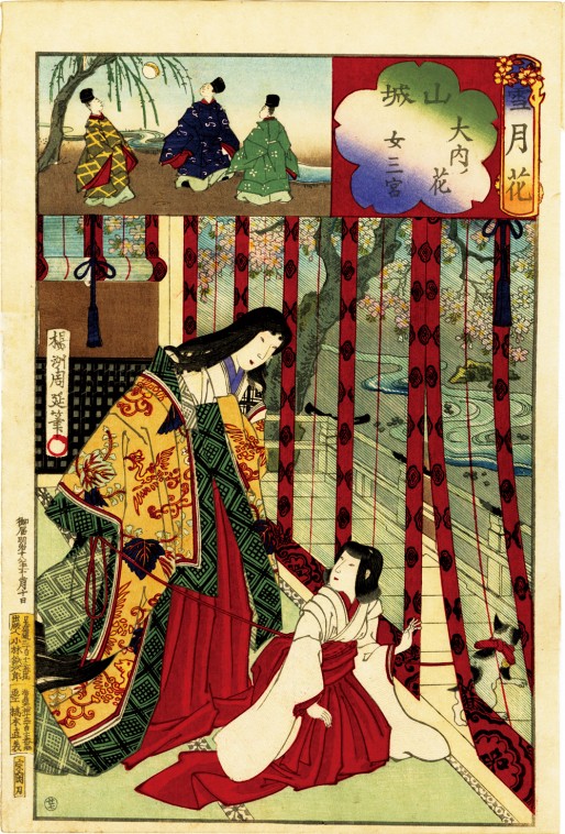 Chikanobu / Yamashiro, Flowers of Ouchi, Snow, Moon and Flowers