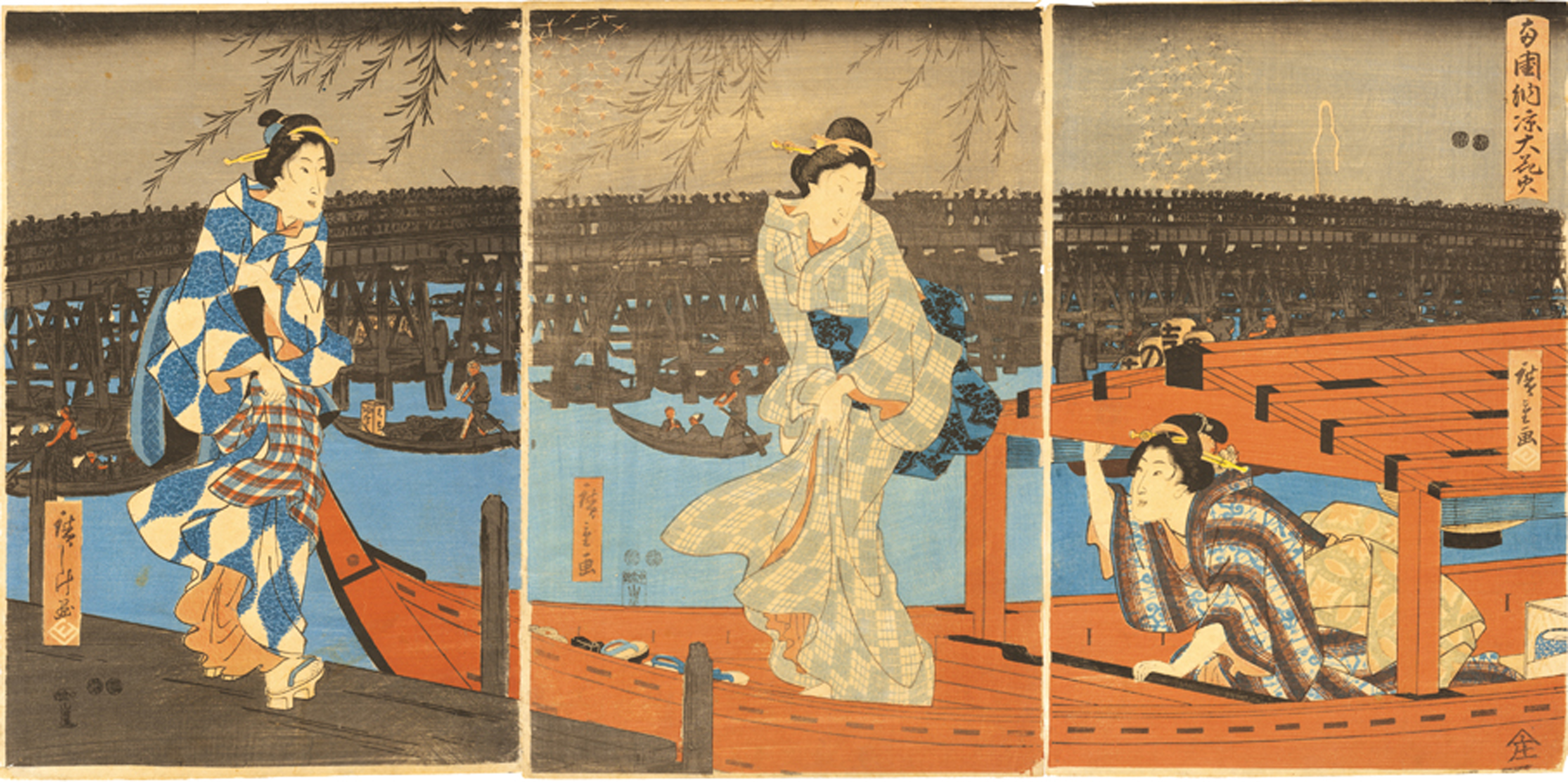 Hiroshige / Enjoying the Evening Cool with Fireworks at Ryogoku