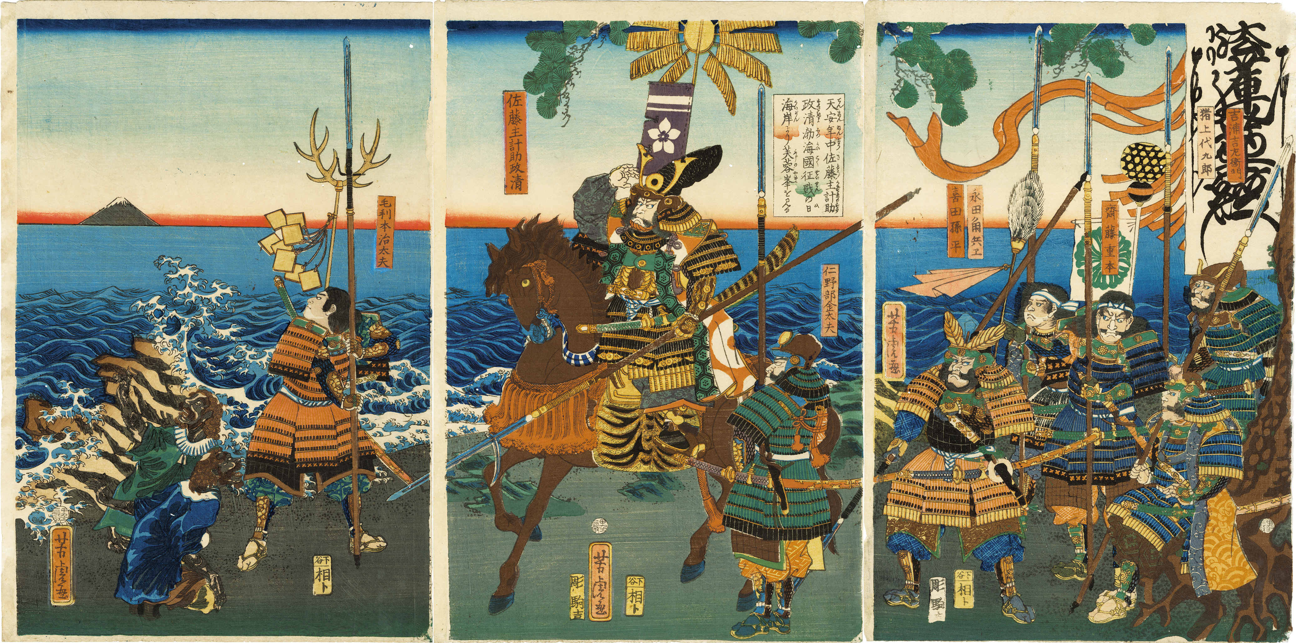 Sato Masakiyo was another name of Kato Kiyomasa who was a famous military commander. The coast where Masakiyo and his warriors are standing on is in Bohai-state which had existed around Korea, Russia, and the north‐eastern section of China.