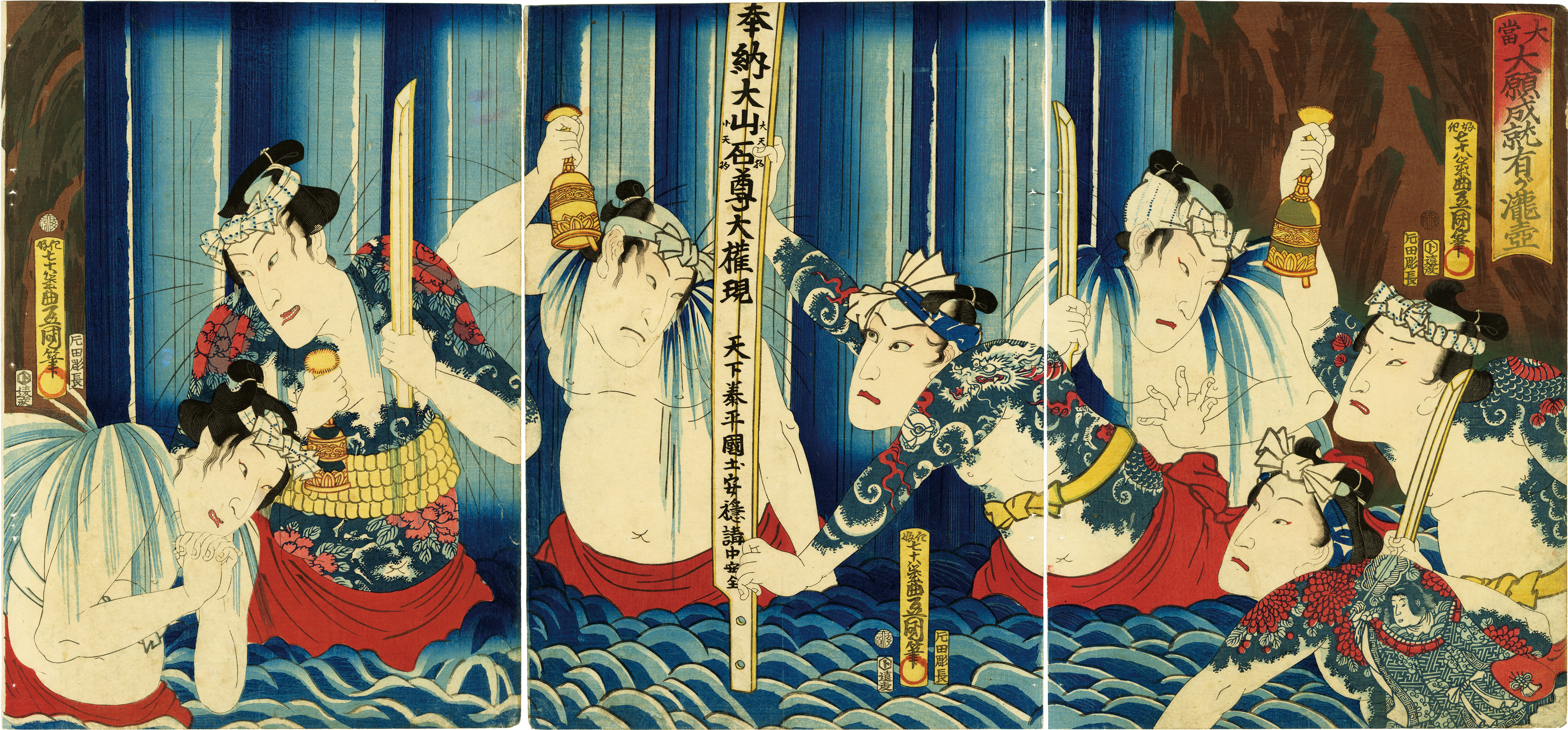 Toyokuni Ⅲ / Men Cleansing Their Body at the Waterfall Before Dedicating the Sword to the Oyama