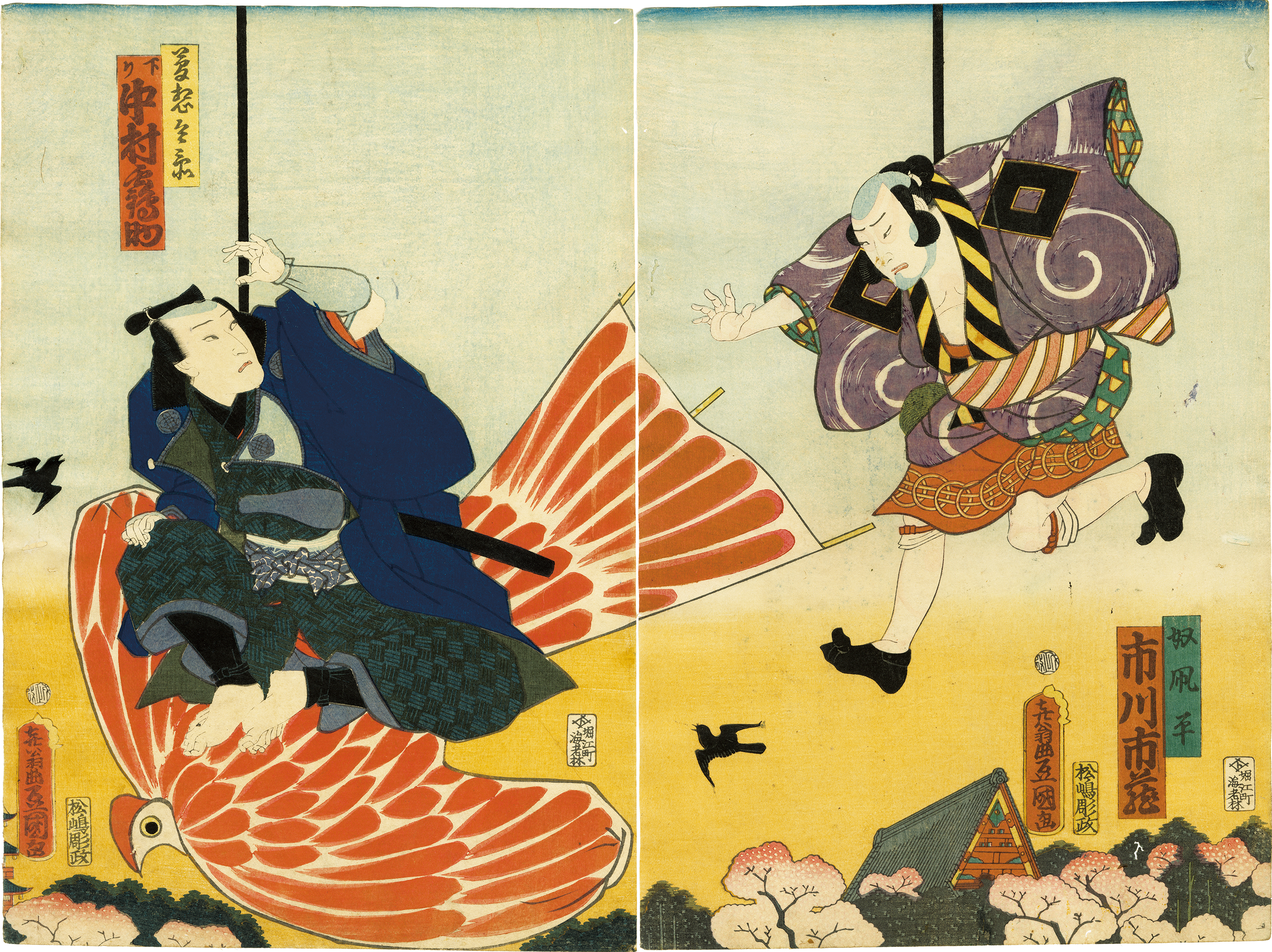 Kunisada (1786 – 1865), also known as Toyokuni III, was the most popular, prolific, and commercially successful artist of ukiyo-e woodblock prints in 19th-century Japan. In his own time, his reputation far exceeded that of his contemporaries, Hokusai, Hiroshige, and Kuniyoshi.