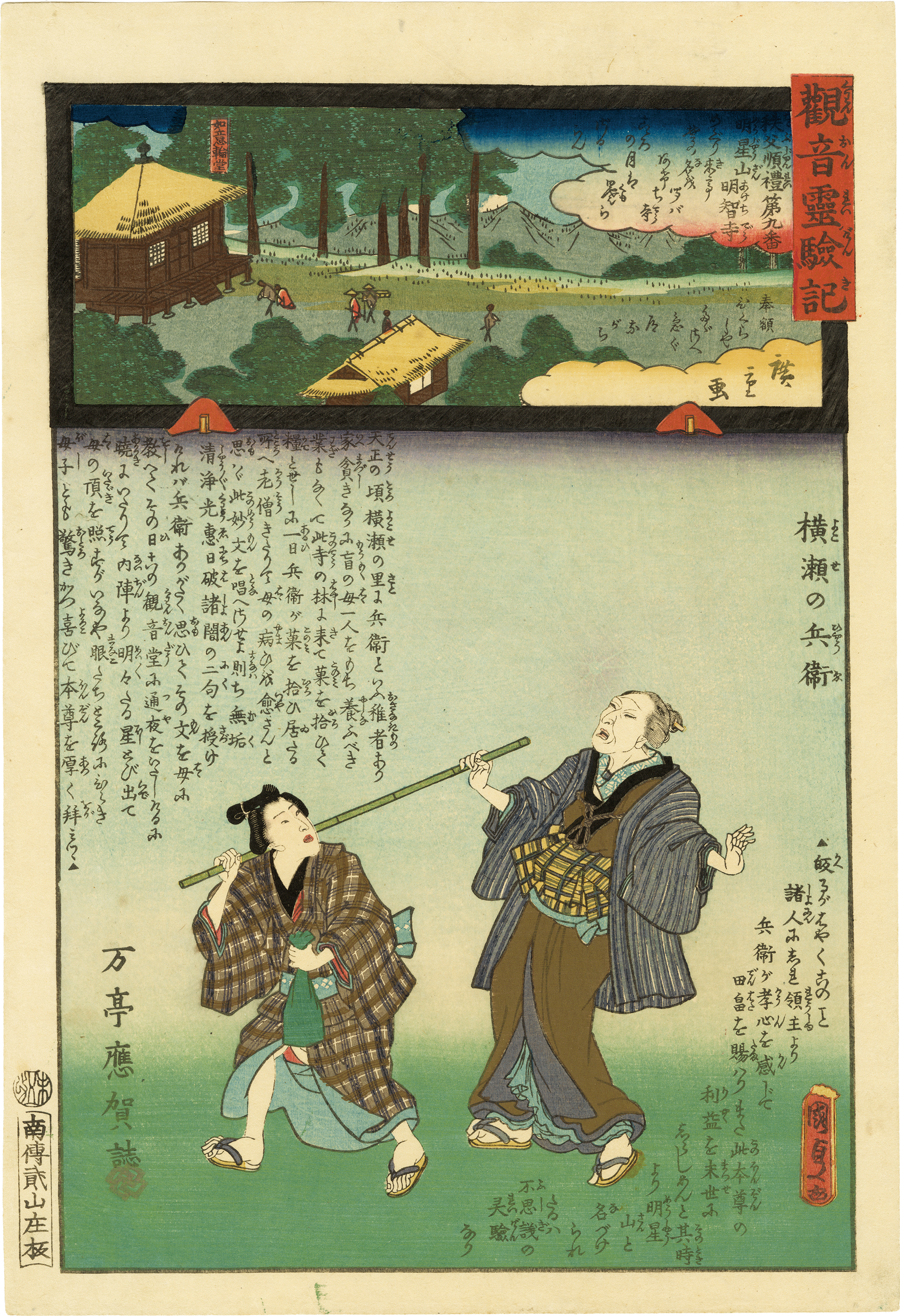 HiroshigeⅡ & KunisadaⅡ / No. 9, Yokose no Hyoe, Mt. Myojo Akechi-Dera Temple, Amazing Stories of Kannon Temples of Chichibu