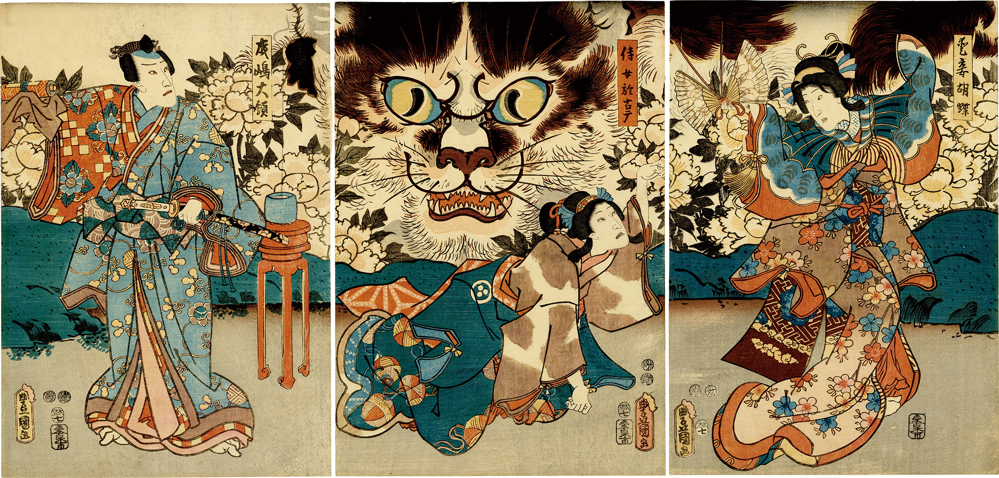 「花埜嵯峨猫魔稿」は、佐賀藩成立をめぐる巷説から生まれた歌舞伎狂言。お家騒動にからめて怪猫のたたりを描いた物語だが、佐賀藩の抗議で上演されなかったという。