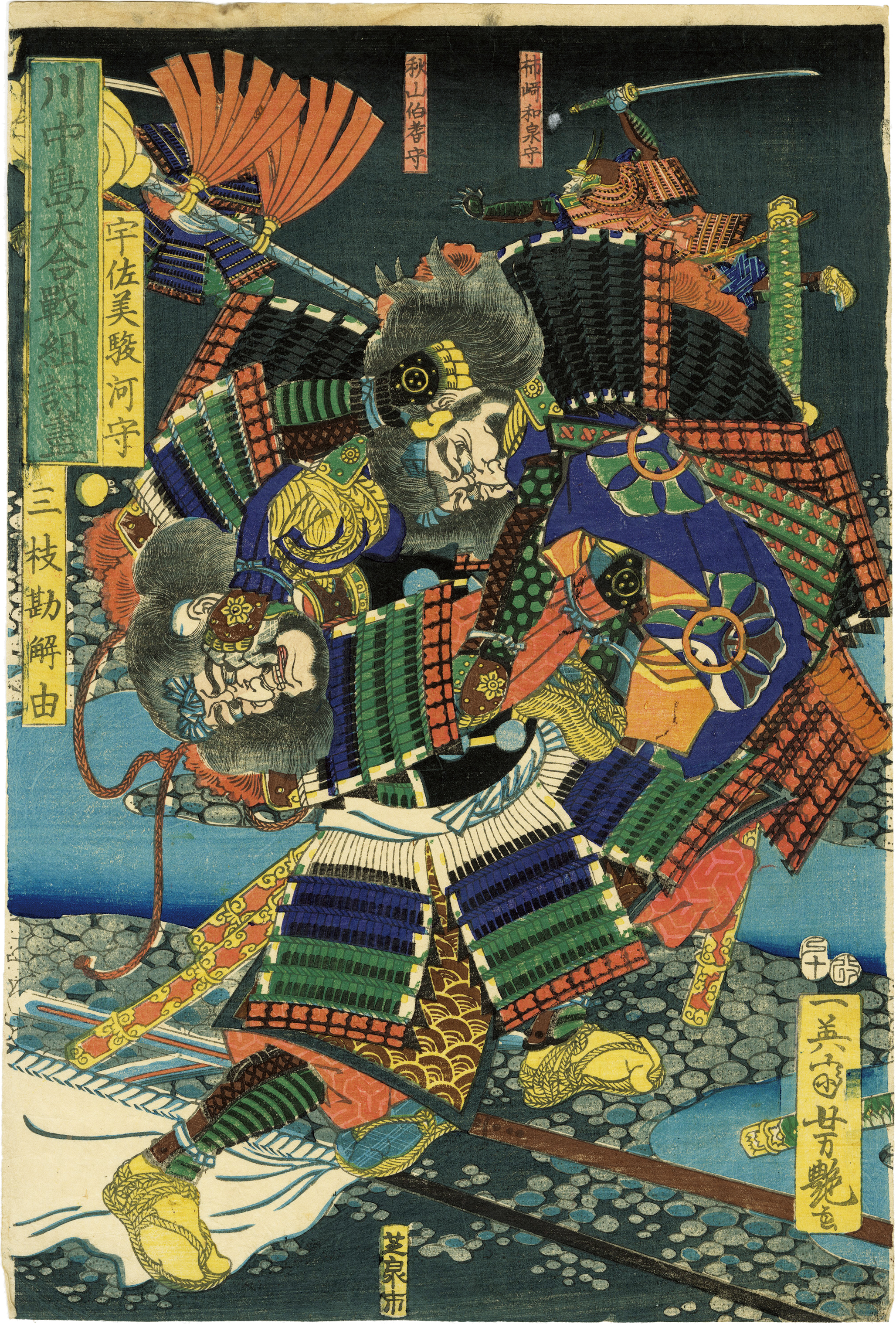 The battle was often depicted as the subject of ukiyo-e, and after the Minamimachi magistrate gave permission for publication during the Tempo period, Kuniyoshi and many other members of the Utagawa school created warrior prints of Kawanakajima.