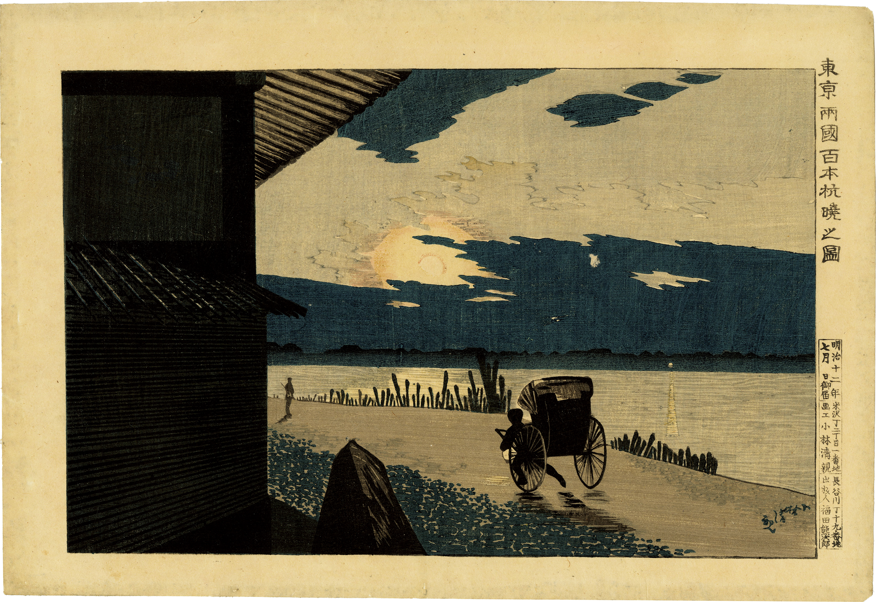 Kiyochika / Dawn at Ryogoku 100 Piles
