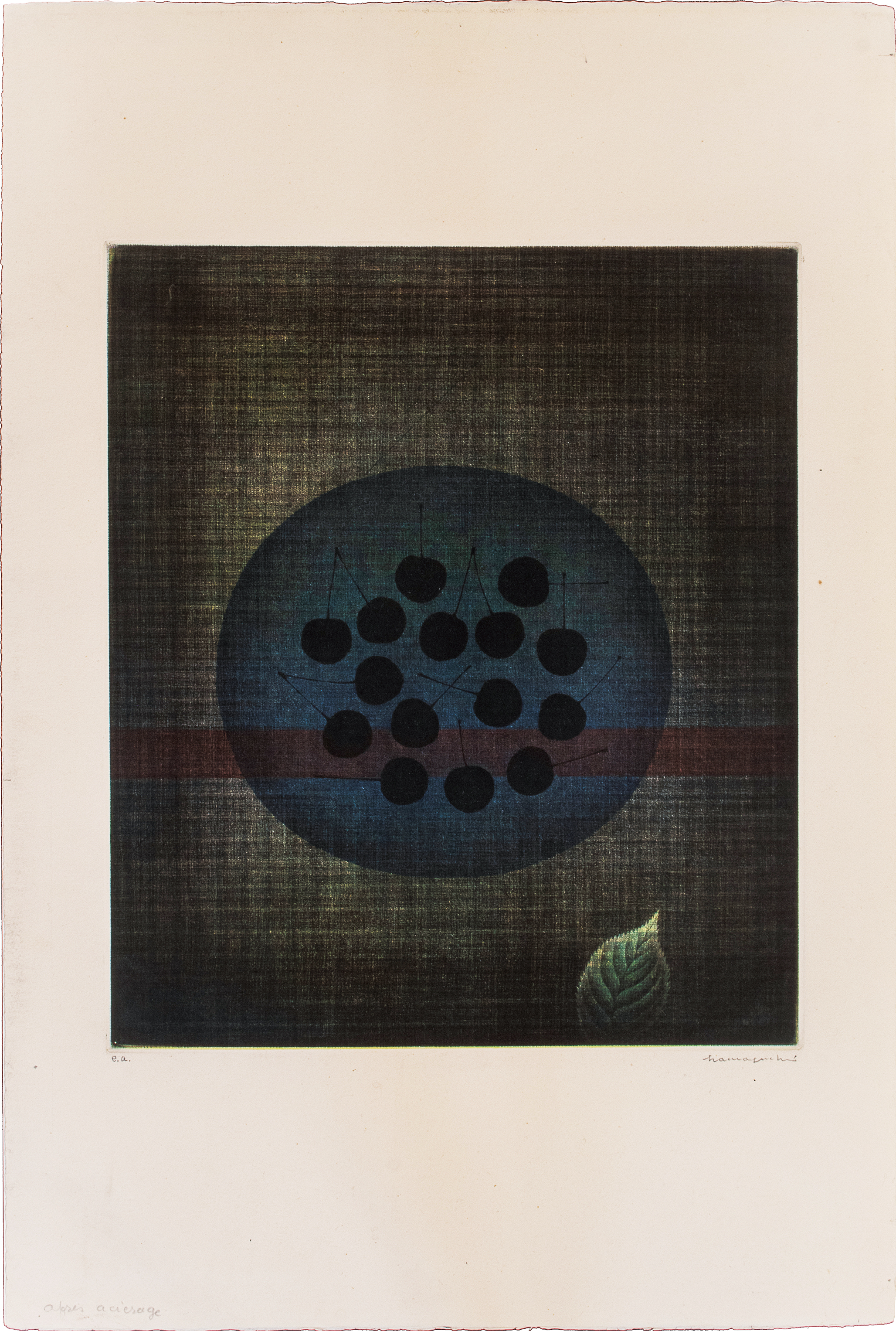 浜口陽三は、黒の技法と呼ばれるメゾチント技法において、色の版を重ねて表現するカラーメゾチント技法を開発した人物である。1957年のサンパウロ・ビエンナーレ版画国際部門での最優秀賞受賞をはじめ多くの国際美術展で受賞を重ね、世界を代表する銅版画作家の一人として広く名を馳せた。