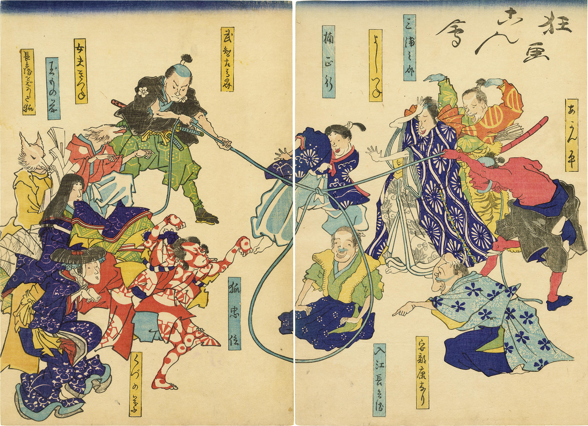 This is a satirical drawing that depicts the events of the Meiji Restoration by portraying them as monsters. Satirical drawings incorporate symbolic elements, inviting the viewer to interpret their meaning. The skill of the artist lies in conveying social and political information in a way that the common people could easily understand and interpret. Furthermore, the ability of Edo’s commoners to read the social context from limited information highlights their considerable political awareness at the time.