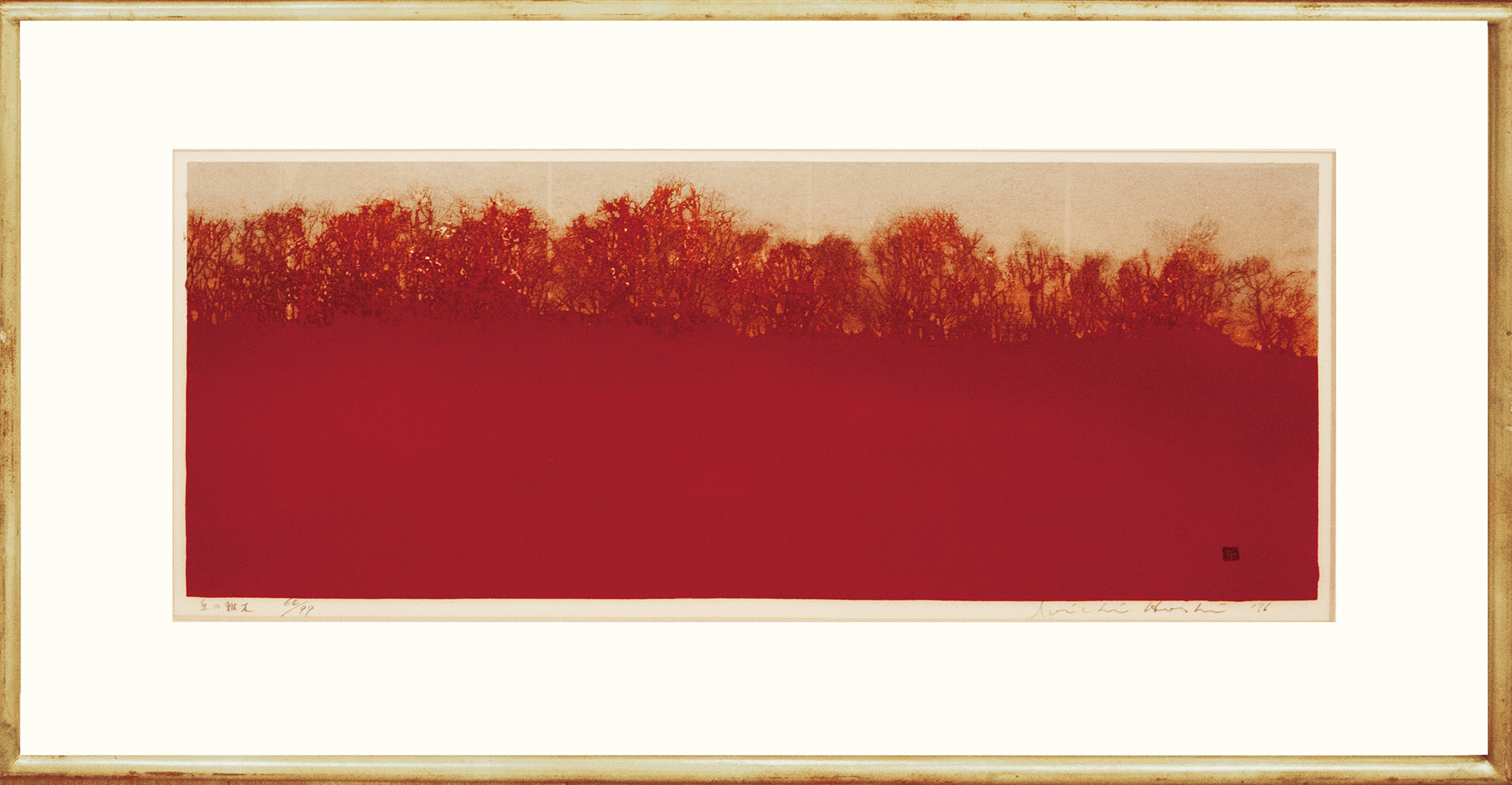 星襄一は、世界で高く評価されている版画家であり、彼の作品には自然への敬意と深い洞察が込められている。木々の静けさと、その背後に広がる無限の時間と空間を描き出しているようだ。色調が独特な透明感を放ち、見る人をどこか遠い記憶の中に誘うような感覚を覚える。