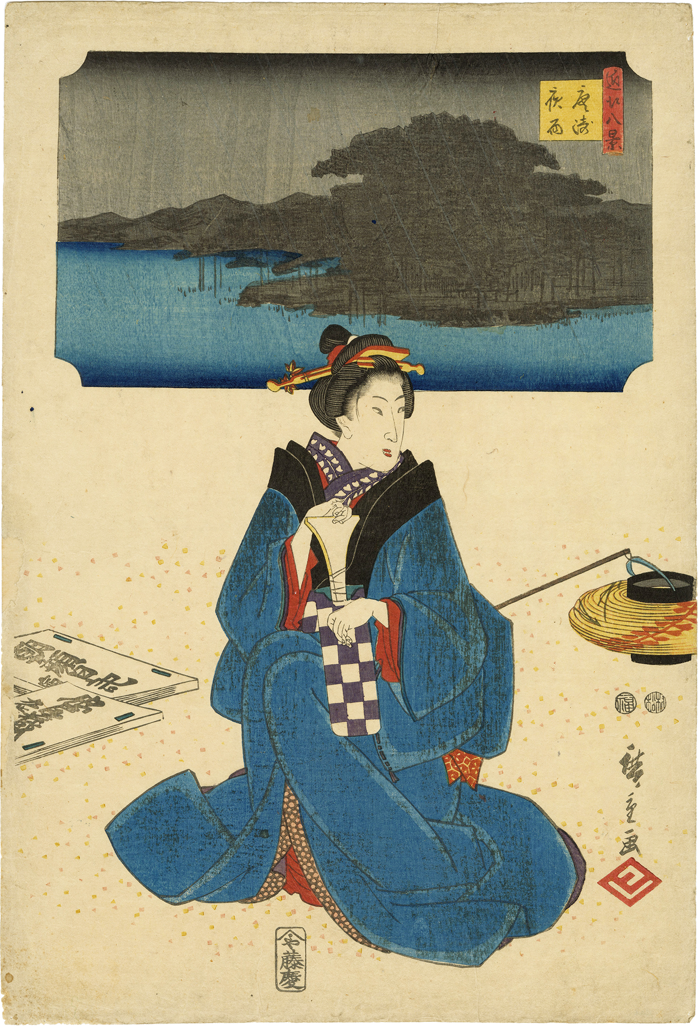 Hiroshige / Night Rain in Karasaki, 8 Views of Omi