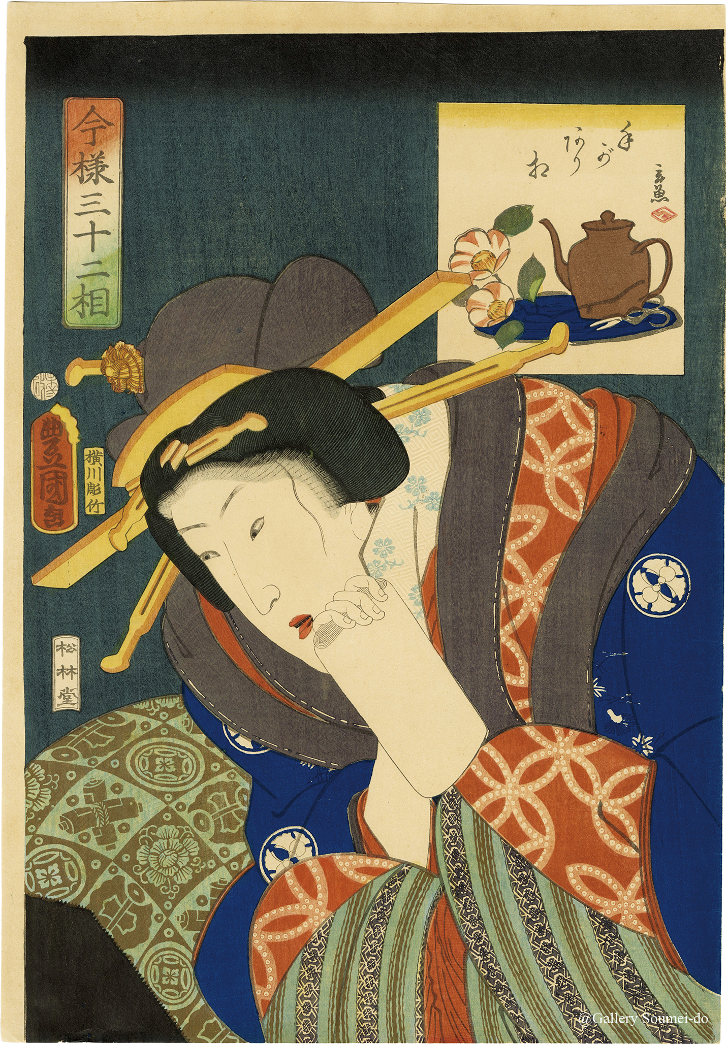 Toyokuni III was a student of Toyokuni. He initially used the name Kunisada, and in 1844, he adopted the name Toyokuni II. (In reality, Toyoshige had already succeeded as Toyokuni II, but Kunisada also took the name at that time, perhaps to solidify his own position. To avoid confusion, Kunisada is now recognized as Toyokuni III.)