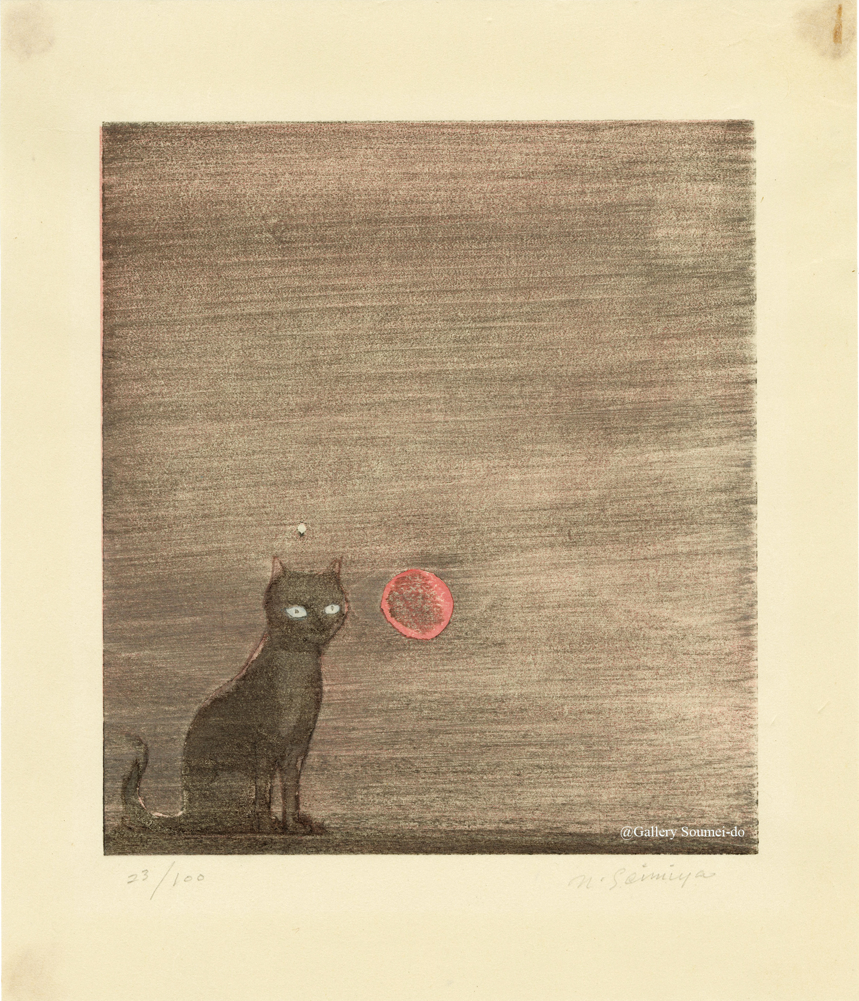 After working as an art teacher and commercial designer and experiencing the war, Seimiya Hirobumi (1917 - 1991) began to produce prints and glass paintings, perhaps under the influence of his father, Seimiya Hitoshi, a printmaker.