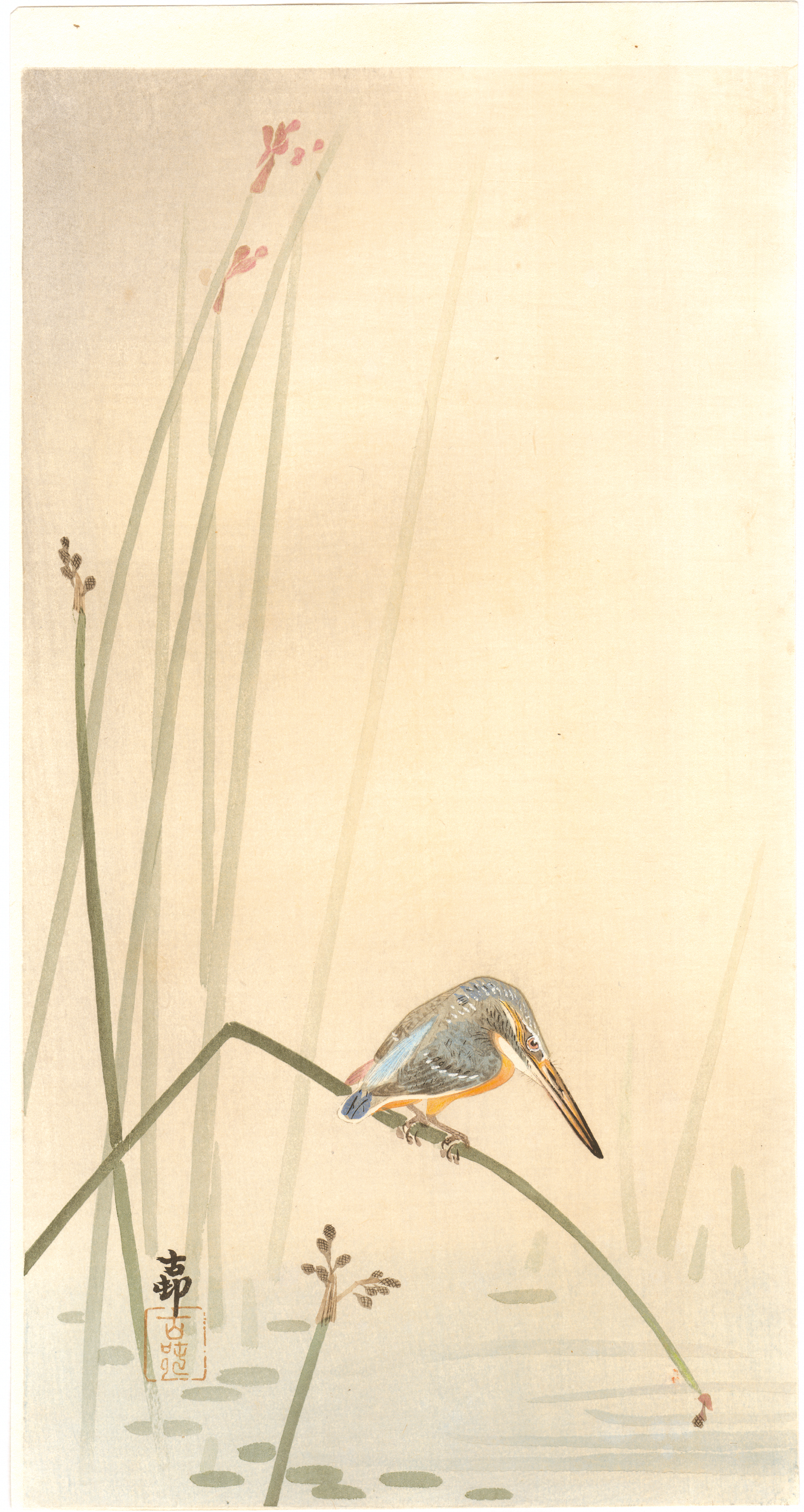 古邨は、花鳥画を得意にしていた鈴木華邨に師事して日本画を習得、やがてアーネスト・フェノロサの指導のもと、古邨と号して肉筆画の花鳥画を描き、共進会に出品もしている。その後、明治38年頃から浮世絵による花鳥画の制作を開始している。画号は明治期の「古邨」、昭和元年以降に渡辺版画店において「祥邨」、カワグチにおいて「豊邨」と号している。