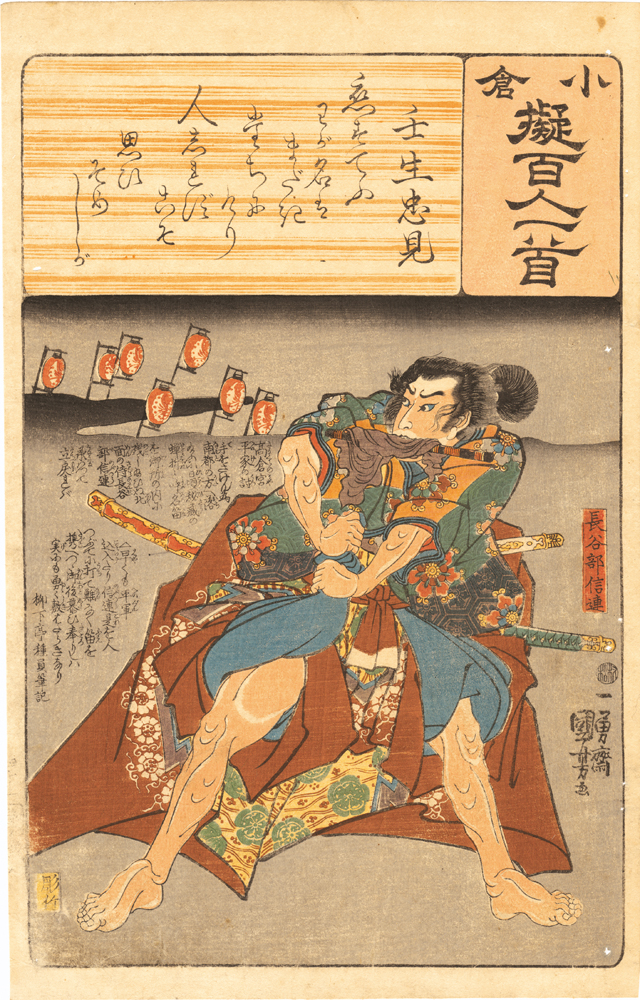 国芳は豊国の門人で、当初は兄弟子の国貞等の人気に勝てず、しばらくは不遇であった。文政頃に発表した「通俗水滸伝豪傑百八人」の連作が評判となり、「武者絵の国芳」と称され、人気絵師の仲間入りを果たした。その後は画想の豊かさ、斬新なデザイン力、奇想天外なアイデア、確実なデッサン力を持ち、浮世絵の枠にとどまらない広範な魅力を持つ作品を多数生み出した。