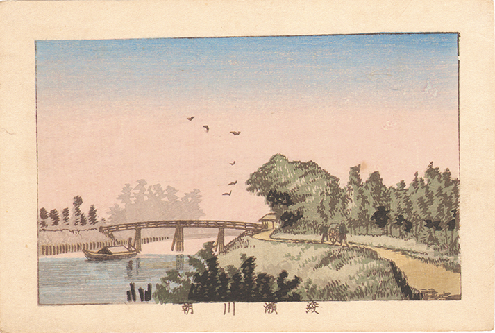 東京真画名所図解は小判サイズ全154点の連作で、明治初期の東京を隈なく描いており資料的価値も高い。全作品中、半数近い59点は清親の作品をほぼ倣い、更にもう3点は清親の強い影響下にある。安治は人物や背景を省略、簡潔な描写に改め、画面の小ささを感じさせない内容のある作品に仕上げた。
