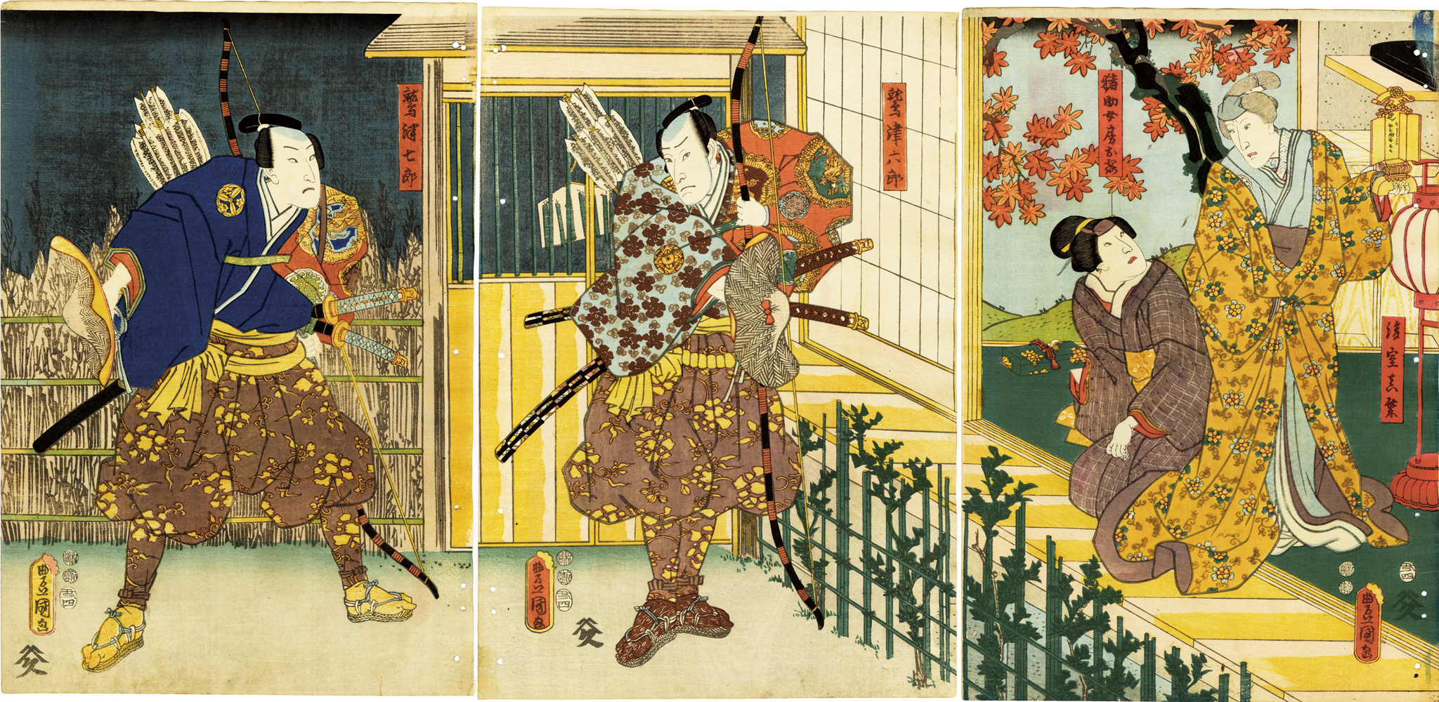 Kunisada (1786 – 1865), also known as Toyokuni III, was the most popular, prolific, and commercially successful artist of ukiyo-e woodblock prints in 19th-century Japan. In his own time, his reputation far exceeded that of his contemporaries, Hokusai, Hiroshige, and Kuniyoshi.