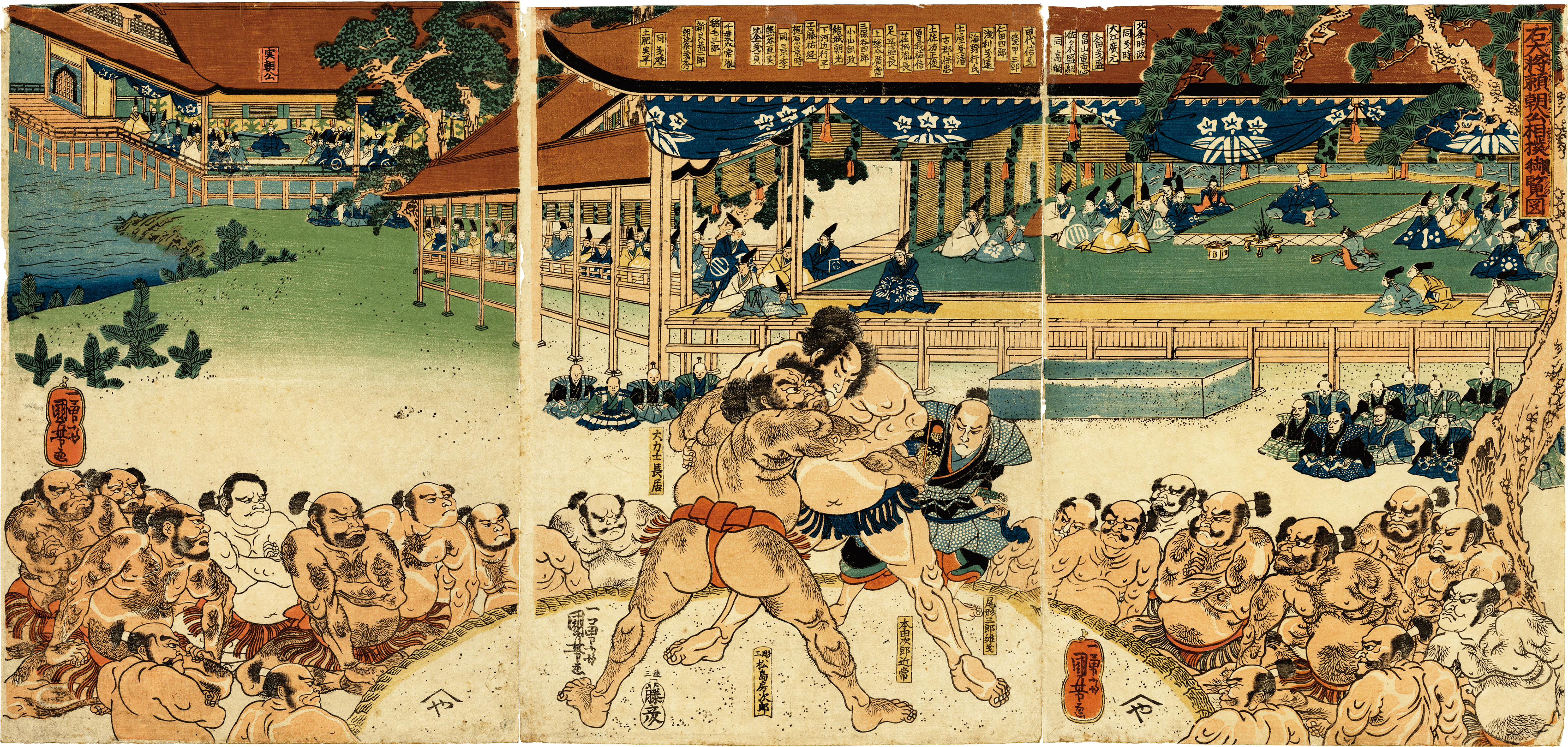 国芳は豊国の門人で、当初は兄弟子の国貞等の人気に勝てず、しばらくは不遇であった。文政頃に発表した「通俗水滸伝豪傑百八人」の連作が評判となり、「武者絵の国芳」と称され、人気絵師の仲間入りを果たした。その後は画想の豊かさ、斬新なデザイン力、奇想天外なアイデア、確実なデッサン力を持ち、浮世絵の枠にとどまらない広範な魅力を持つ作品を多数生み出した。