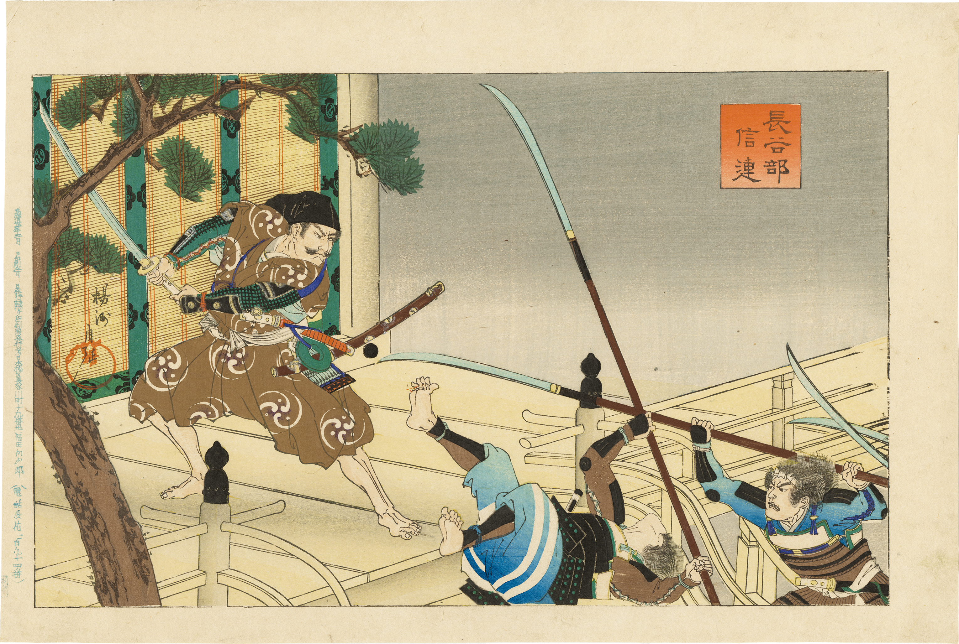 Chikanobu used to use the name YoshitsuruⅡ, however, he became a pupil of ToyokuniⅡafter Kuniyoshi died, and after ToyokuniⅢ died, he became a pupil of Kunichika. Then, finally, his name became Chikanobu.