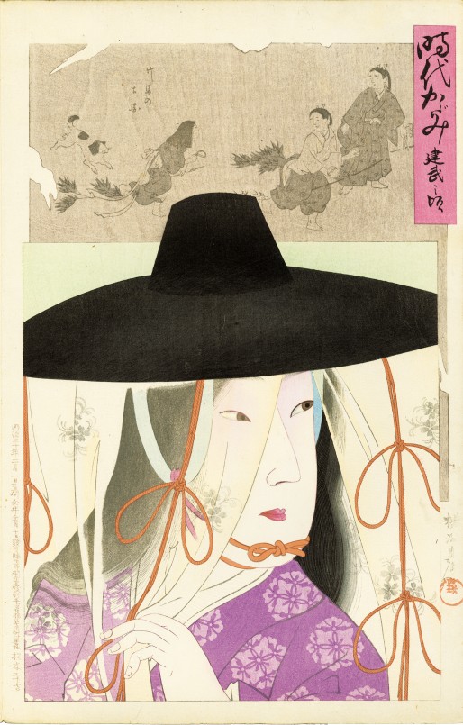 This artwork, "Faithful Depiction of the Ages", is the series whose motifs are hairstyles and fashions of beauties from Kemmu-Era to Meiji-Era.