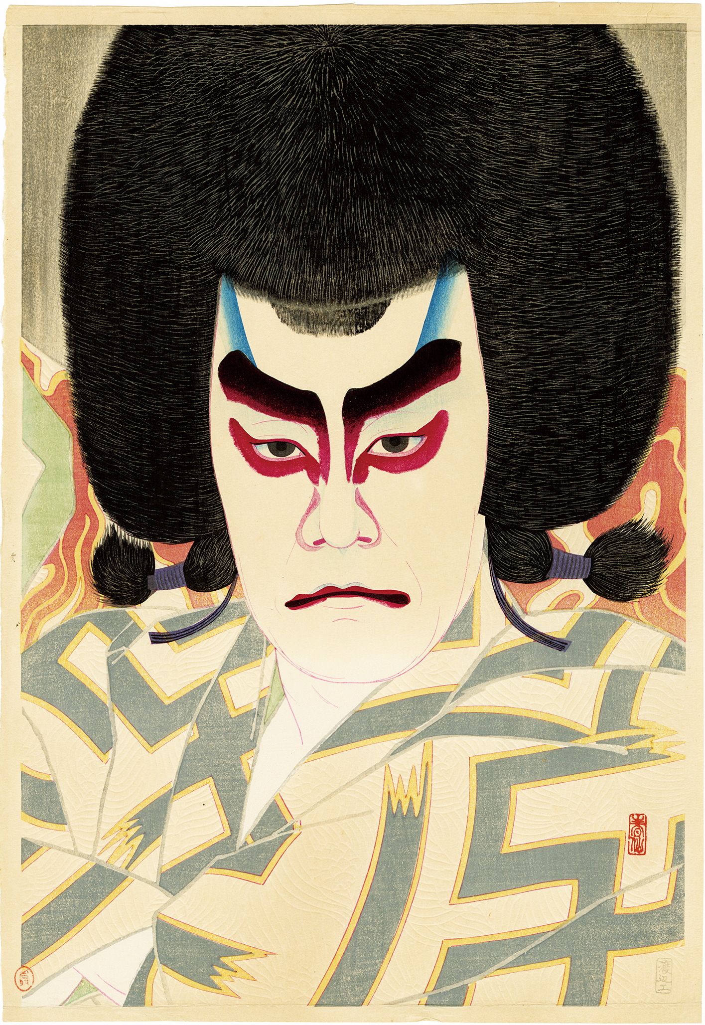 In the Taisho era (1912-1926) and later, he produced prints of actors' portraits for the publisher Shozaburo Watanabe, which were very popular.