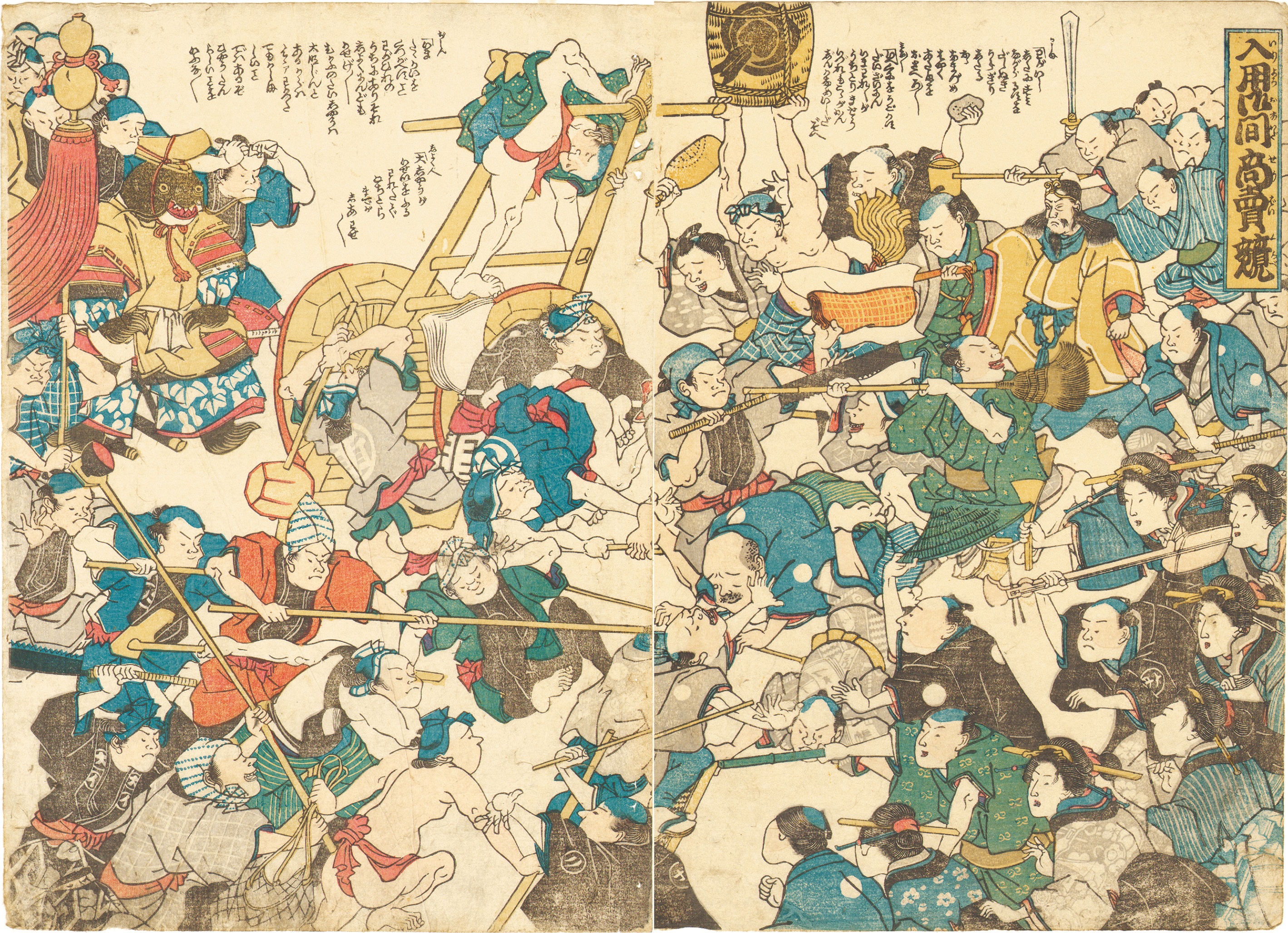 In this artwork, people who got benefits and who got damage raised by the Ansei earthquake are fighting. Shopping Guide & Information of the Japanese Prints