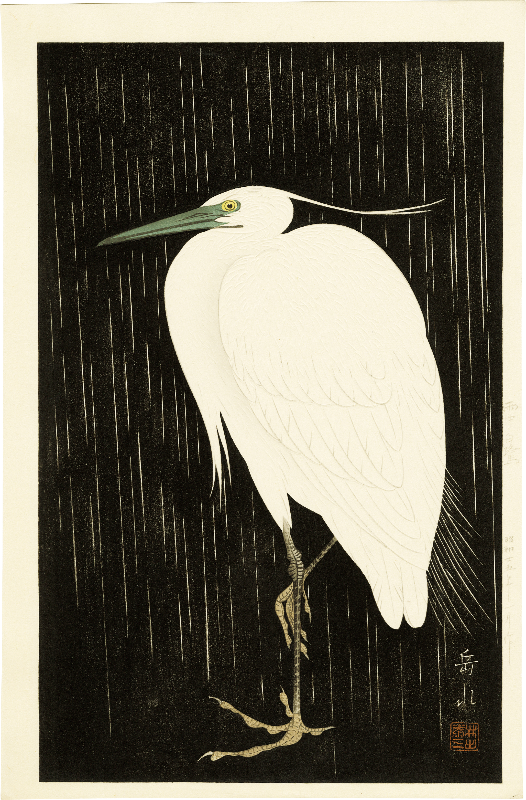 His strong, spontaneous lines have a different unique feel to the prints of his contemporaries artists such as Koson.