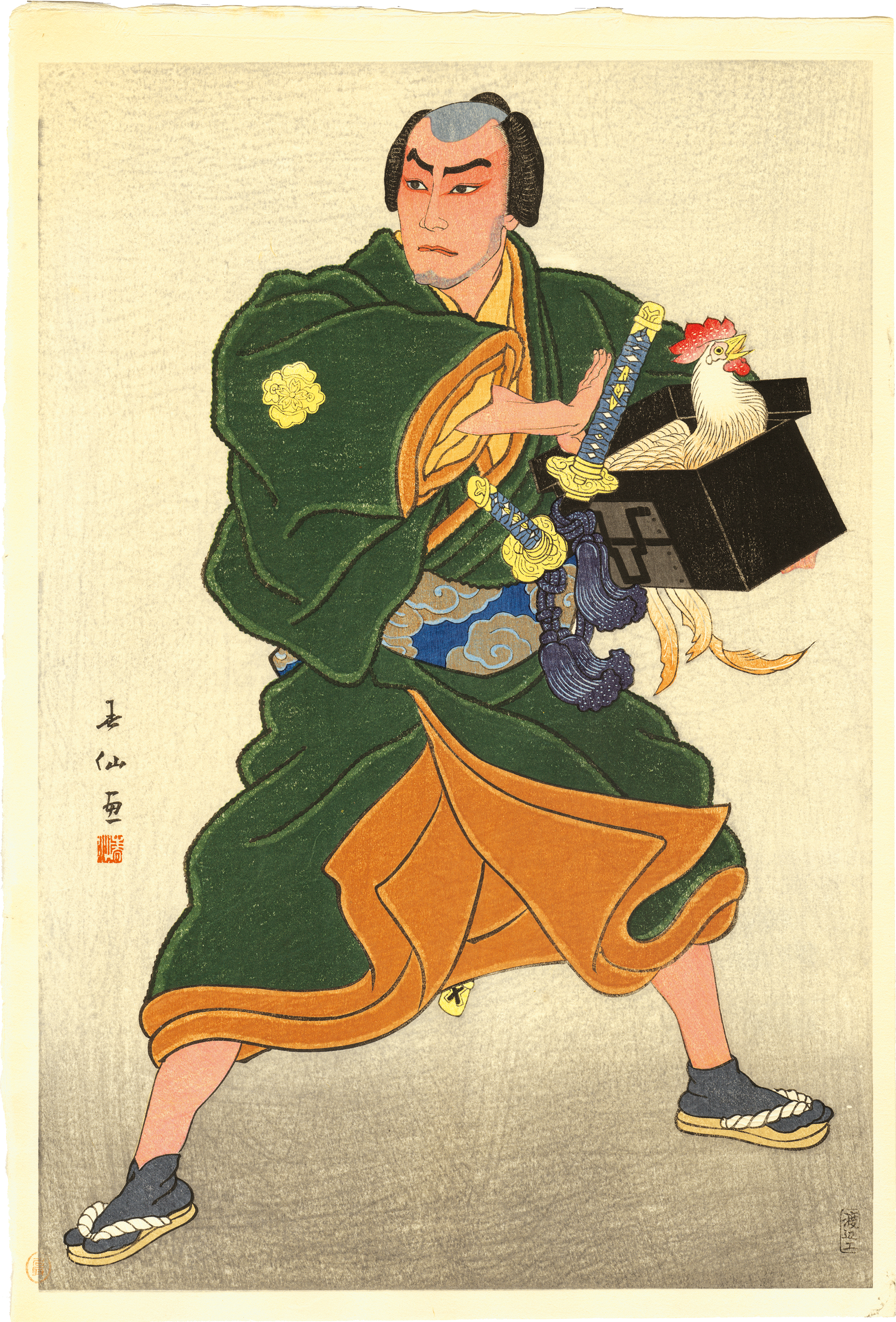 In the Taisho era (1912-1926) and later, he produced prints of Kabuki actors' portraits for the publisher Watanabe Shozaburo, which were very popular and breathe new life into Ukiyo-e print, which had been stagnant since the Meiji era.