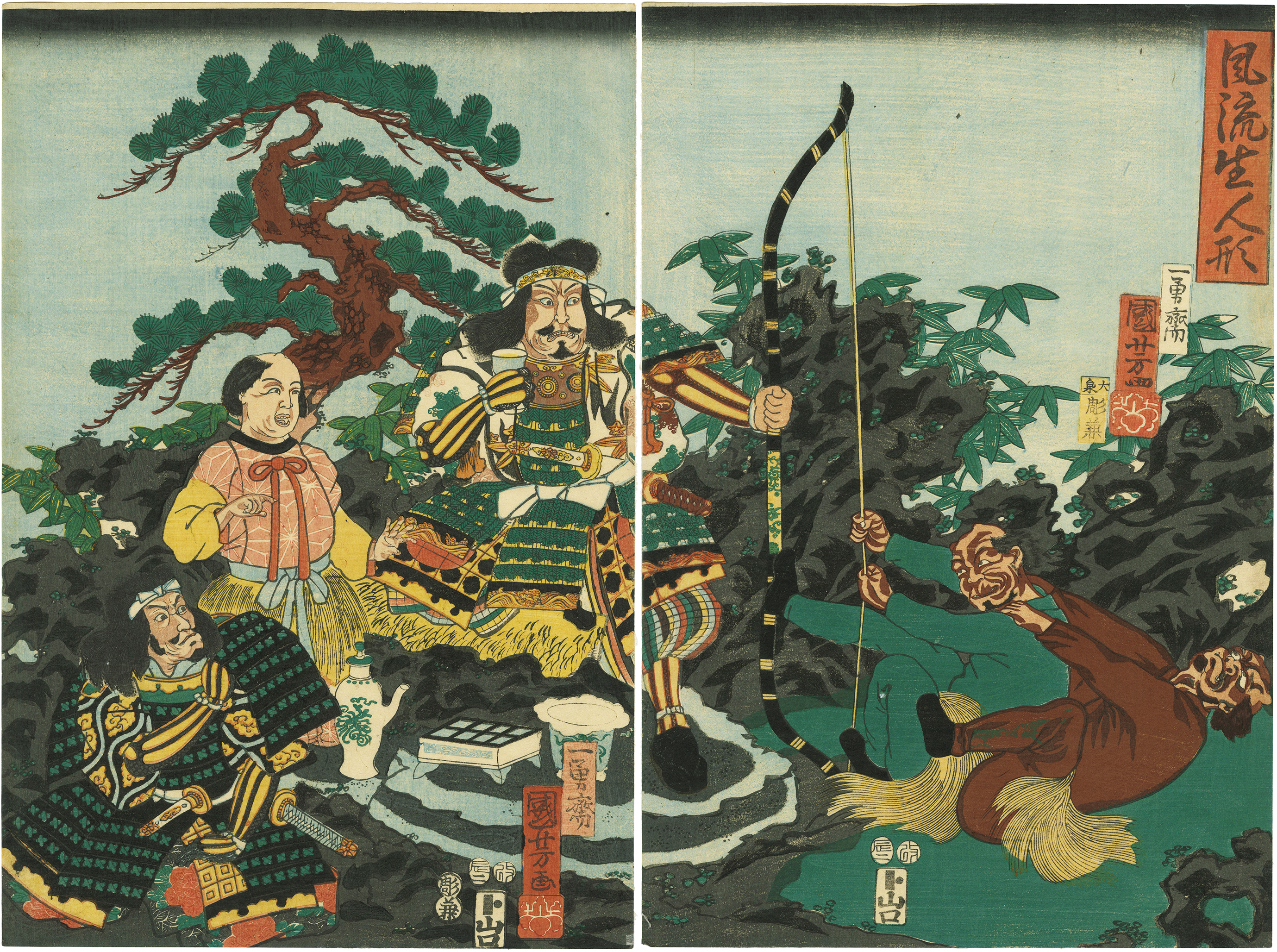 Kuniyoshi was one of the pupils of Toyokuni and was a late bloomer than Kunisada and other pupils.