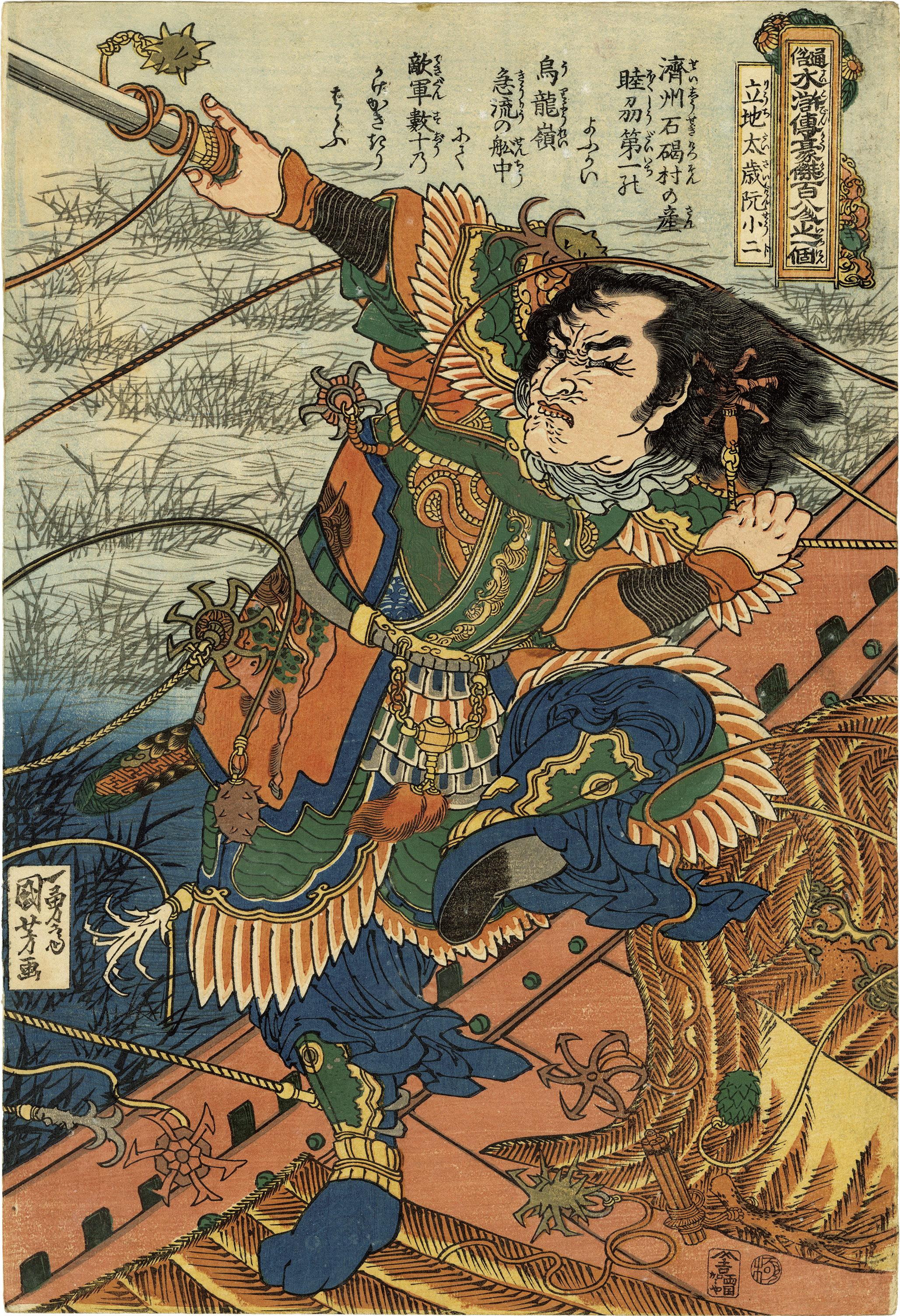Around the Bunsei-period, he published "108 Heroes of the Popular Suikoden", it created a sensation and made him popular. He was called "Warrior-painter-Kuniyoshi" and became one of the most popular Ukiyo-e artists.