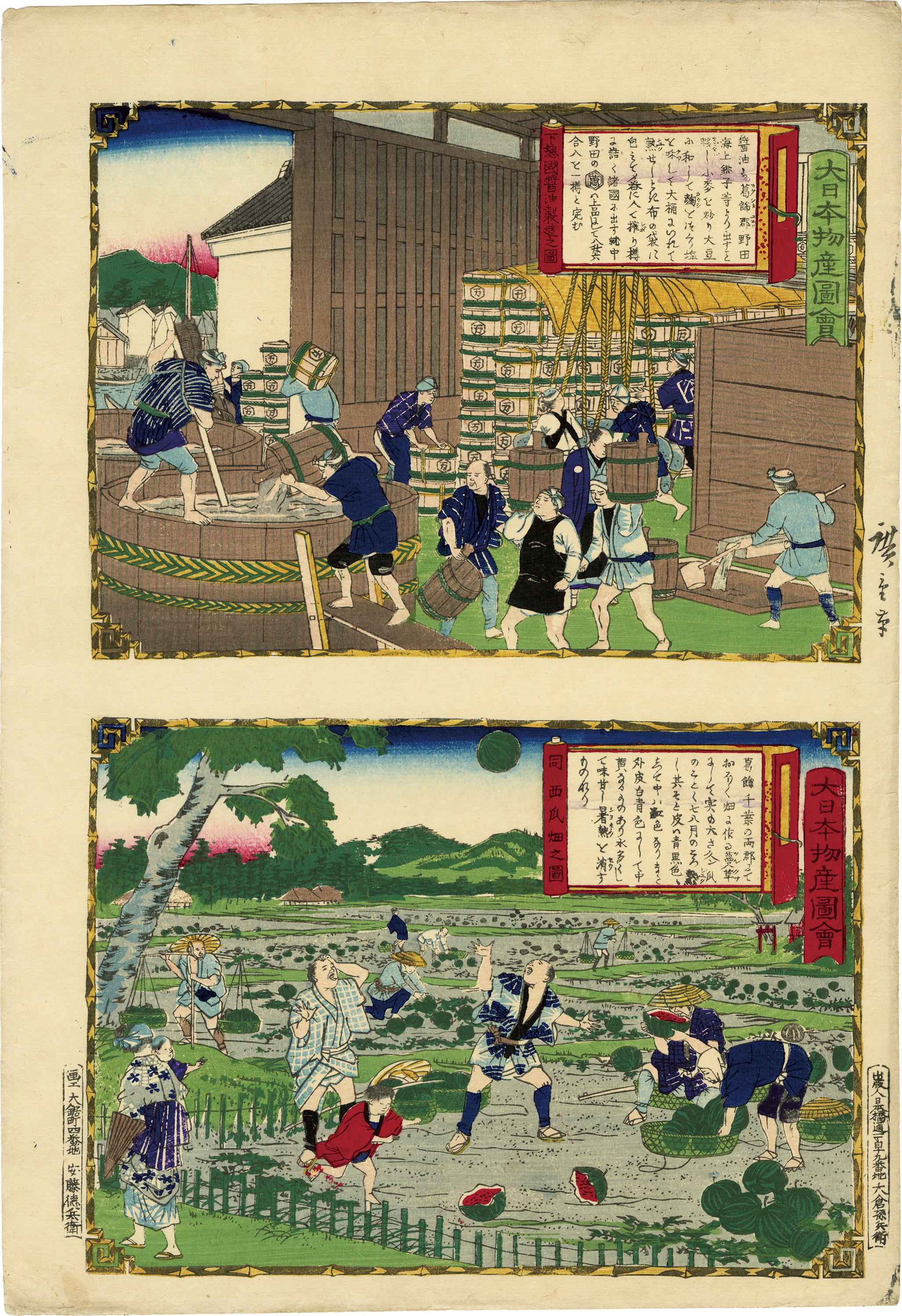大日本物産図会は、日本各地の名産品の収穫・加工製造の様子を集めた大変おもしろいシリーズ。