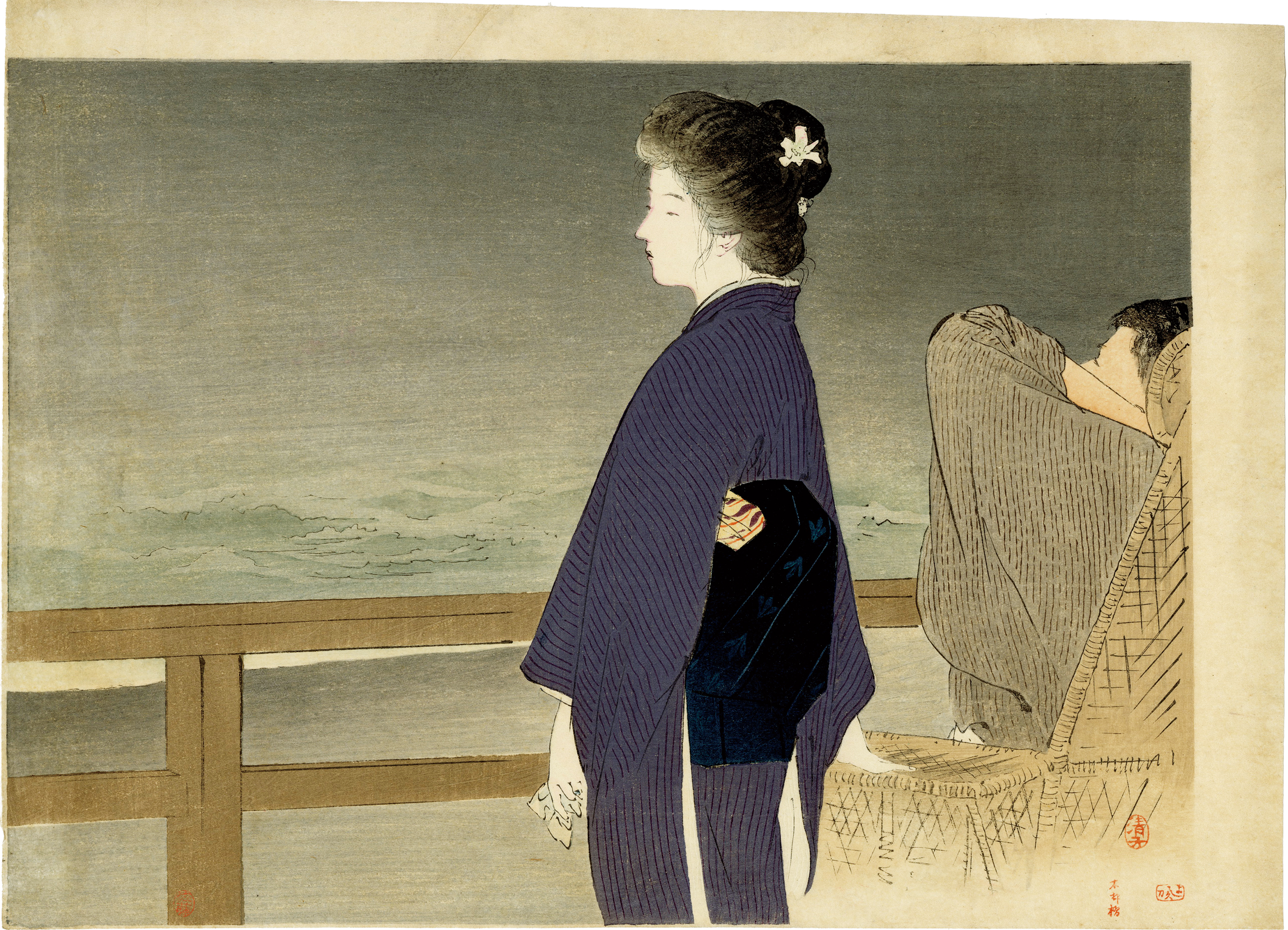 In his youth, he became acquainted with Izumi Kyōka and produced illustrations for his works. Influenced by this relationship and by his own childhood environment, Kiyokata remained deeply connected throughout his life to Edo sensibilities and the aesthetic ideals of ukiyo-e.