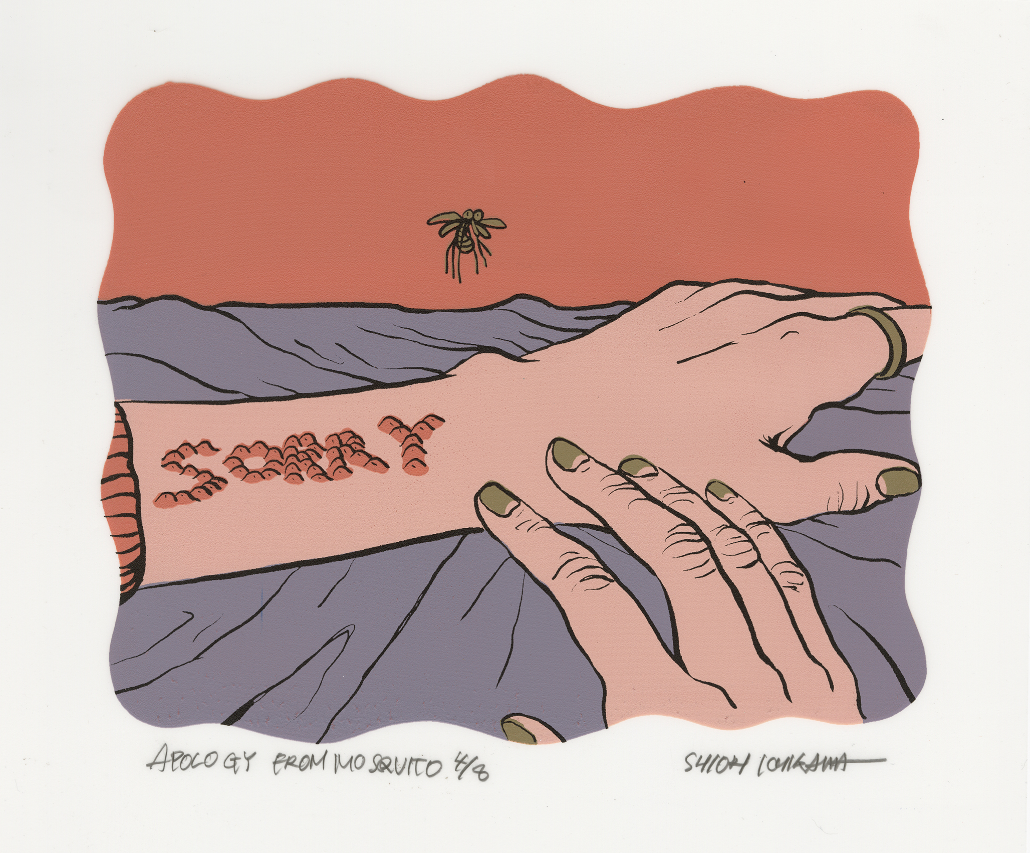 Fed up with the mosquitoes biting him, he jokingly said, "I'd forgive them if they'd just form a 'sorry' and bite me." He laughed.