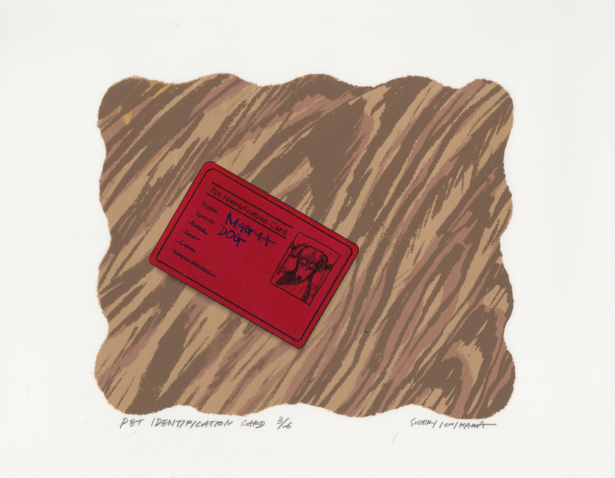 One day, the humans decided to issue identification cards to their pets. It was a controversial decision and a point of debate among people. One day, a person claiming to be a lawyer for pet rights came to the owner's house and said, "On his ID card, besides the fact that he is a dog, there's a field for you to fill in some very sensitive information. Your dog is upset about that, isn't he?" The lawyer said to the owner and roughly and emotionally drew a line through all the fields except for "species" and "name" on the dog's identification card that had just arrived. He seemed to be quite angry. Magma accepted the treat that the lawyer had brought with a bit of trepidation.