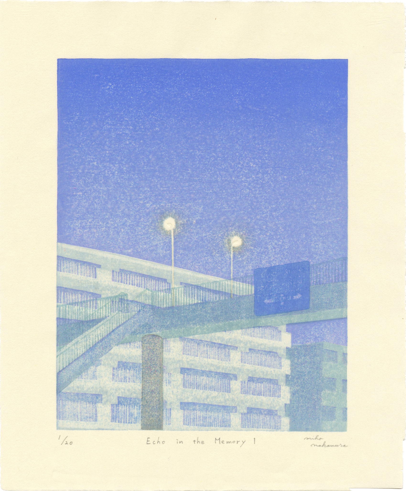 中村のあたたかな眼差しは、現代の風景の中で見逃してしまいそうな無機質なものにも丁寧に向けられている。絵の中に存在する空気は、不思議とどこか見知った情景のような気がして、心の奥底に眠っていた記憶や心情が呼び起こされる。木版画ならではの色の重なりの美しさや、版と作者の丁寧なやりとりもうかがわせる作品を、是非手元で大切に眺めて頂きたい。