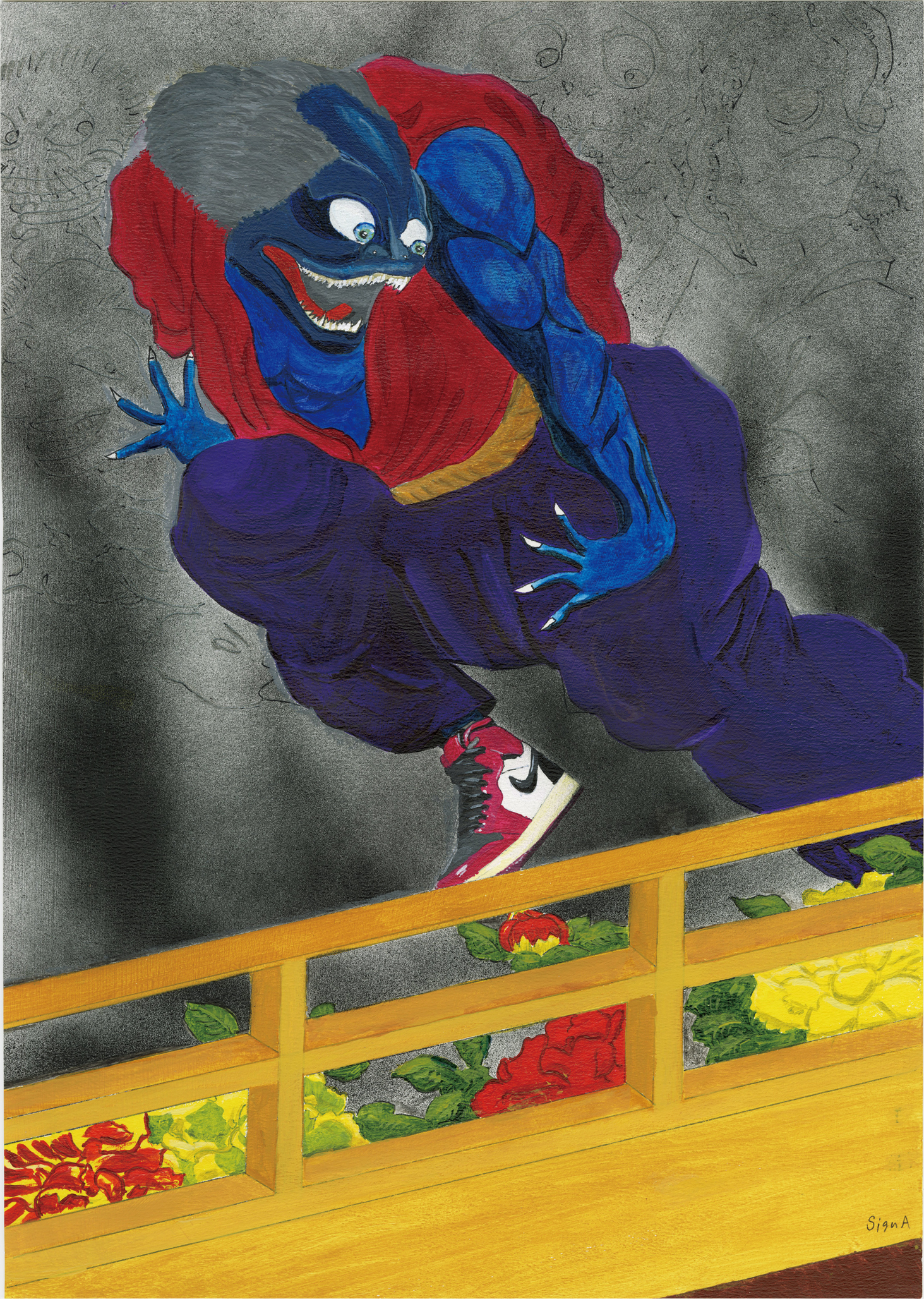 Sign A は、おもに実際に存在する浮世絵を流用した、ステンシル・グラフィティやペインティングの作品を制作している。