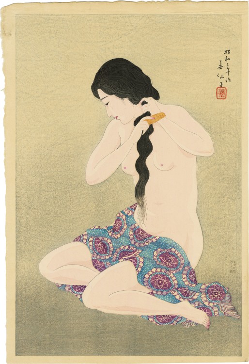 橋口五葉 / 髪梳ける女