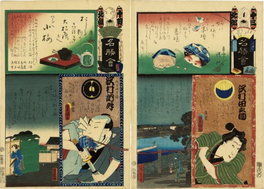 豊国三代・広重二代・暁斎・芳虎・應翠 / 江戸の花名勝会 十三・十四 北組 宮戸川番場河岸・小梅の朝の雨
