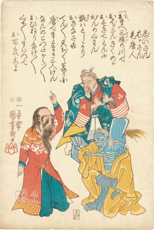 Kuniyoshi was also known as an avid lover of cats. He produced numerous humorous caricatures in which cats are anthropomorphized, as well as works imbued with a rebellious spirit that verge on satire of the shogunate. His innovative style, which daringly incorporated elements of Western realism, is now being highly reappraised worldwide as one of the important sources of modern Japanese pop culture.