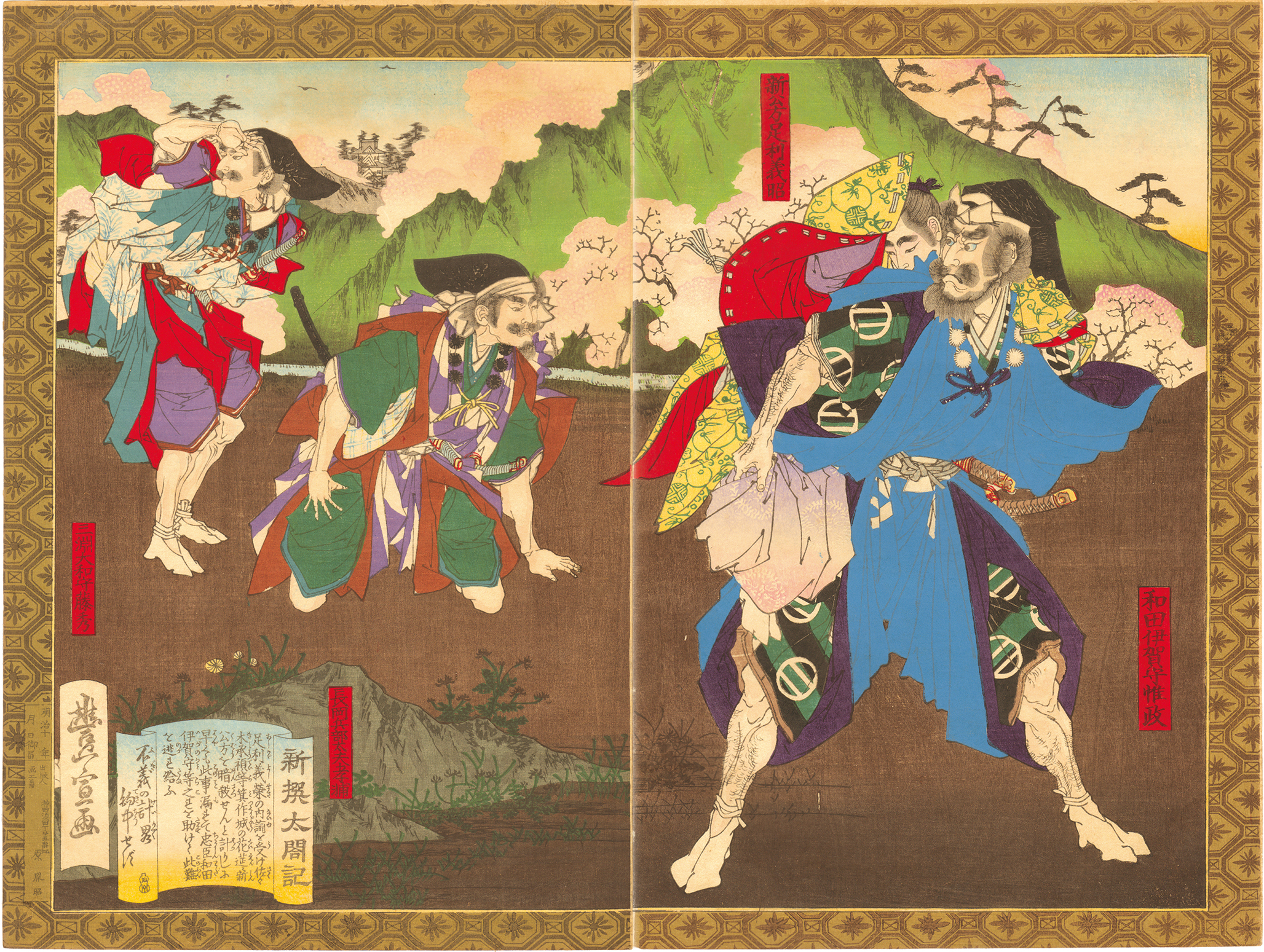 豊宣は、二代目歌川国久の長男であり、武者絵を多く制作した。