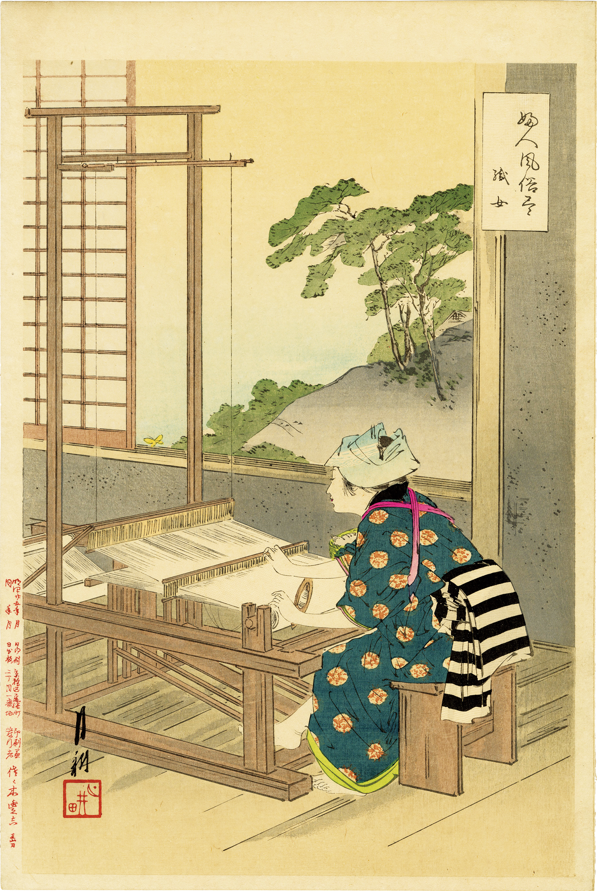 Gekko learned the painting techniques by himself from the design work of the painting on the ceramic and lacquer. After the study, he started self-publishing in 1877, and it made him known little by little. From 1882, he started the work of Kuchi-e and illustration. After that, he became one of the most famous artists.