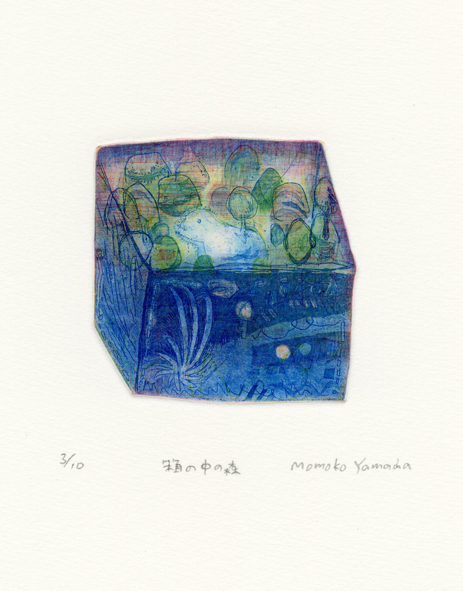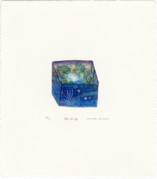 山田桃子は、主に銅版画の技法を用い、その独特な世界をうつした作品を制作している。