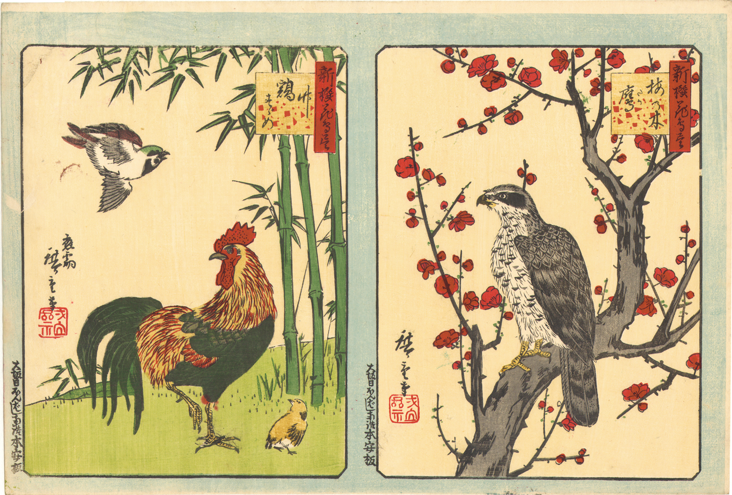 広重二代は広重の門人で、当初は重宣と称していた。安政5年に広重が没すると、広重の養女お辰の婿になり、二代目広重を襲名する。広重の「名所江戸百景」にも参加し、全120図の内「赤坂桐畑雨中夕けい」には、「二世広重画」と款している。「市谷八幡」、「上野山下」、「びくにばし雪中」3点の作者も広重二代であるとされる。その後お辰と離別することになり、立祥と号し横浜絵、開化絵などの制作を続けた。