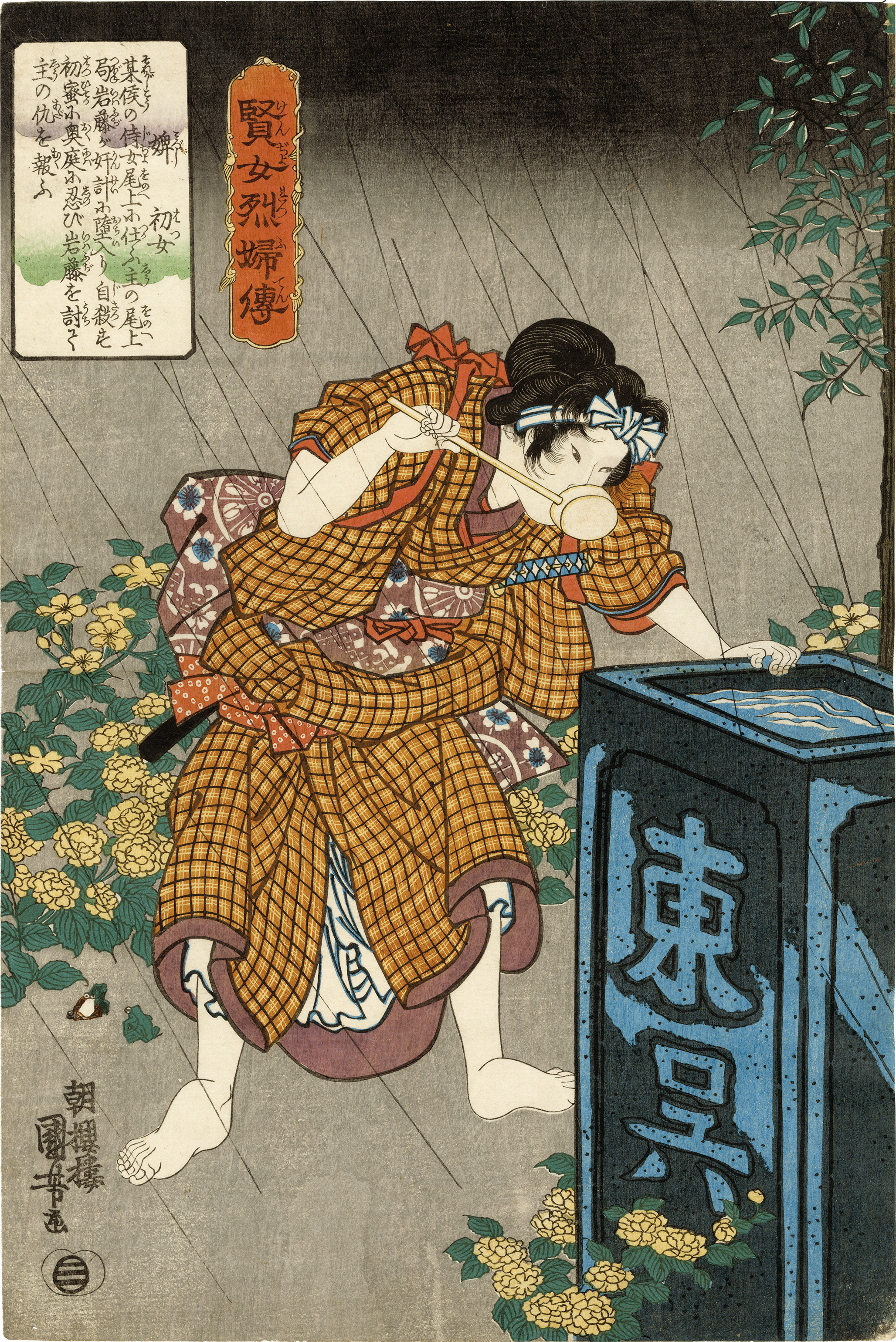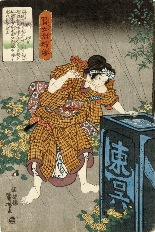 国芳は豊国の門人で、当初は兄弟子の国貞等の人気に勝てず、しばらくは不遇であった。文政頃に発表した「通俗水滸伝豪傑百八人」の連作が評判となり、「武者絵の国芳」と称され、人気絵師の仲間入りを果たした。その後は画想の豊かさ、斬新なデザイン力、奇想天外なアイデア、確実なデッサン力を持ち、浮世絵の枠にとどまらない広範な魅力を持つ作品を多数生み出した。