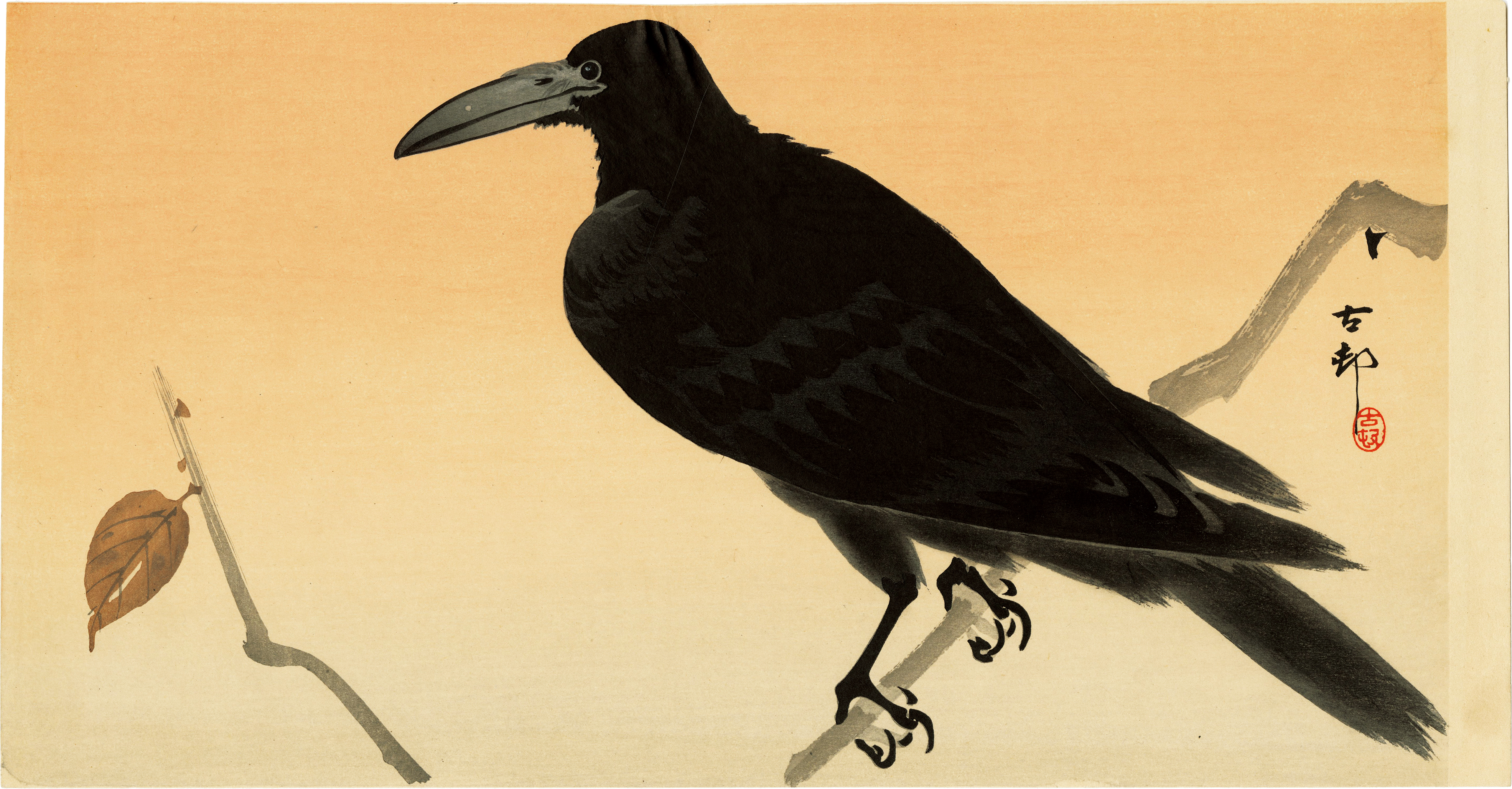 This is an O-tanzaku-sized print depicting a crow, published by Daikoku-ya.
