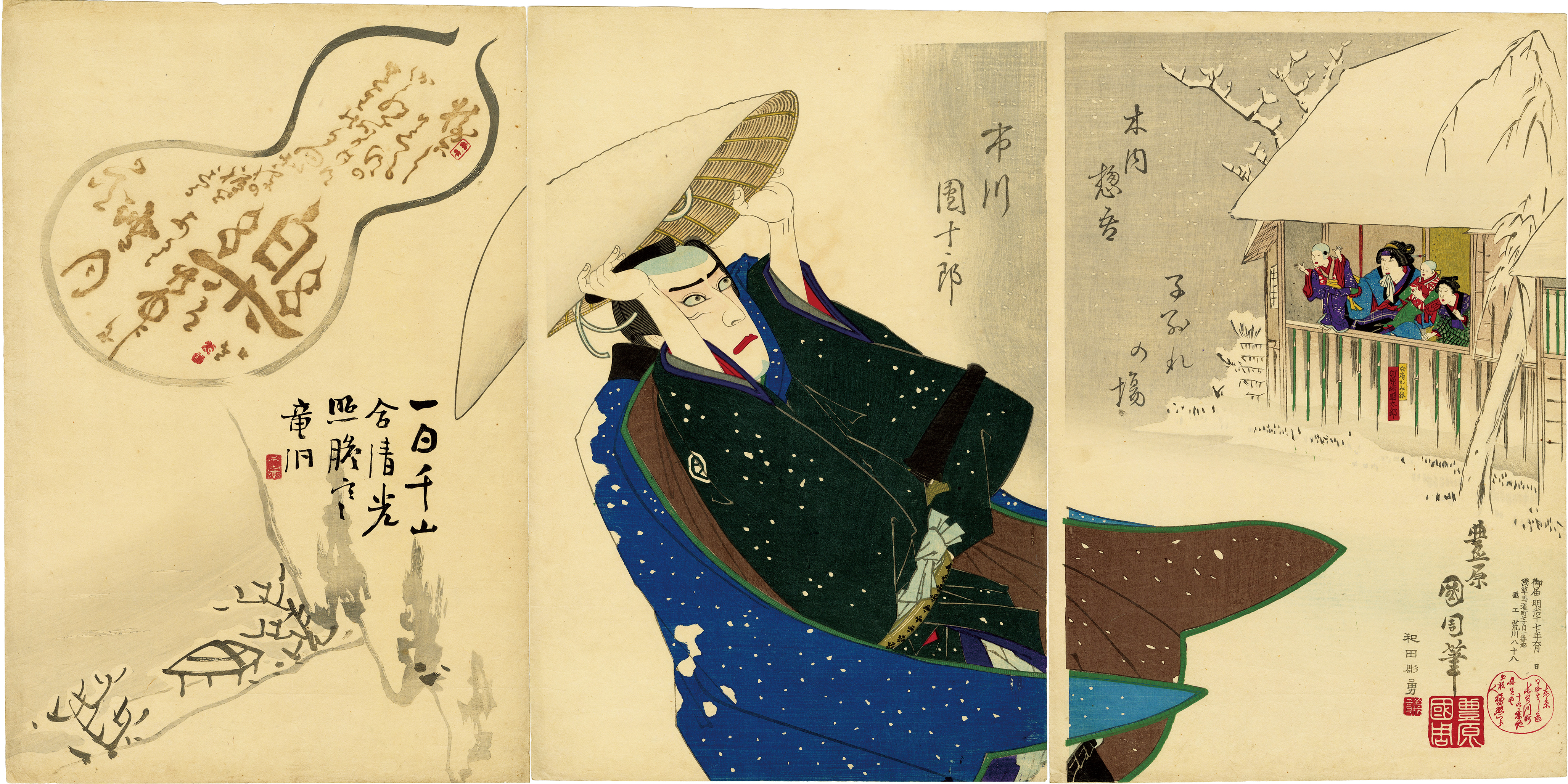 Kunichika pioneered the triptych of actor Ukiyo-e and is one of the essential Ukiyo-e artists who depicted the kabuki actors. Since he left various kabuki prints, these are also worth in the study field of kabuki play archives.