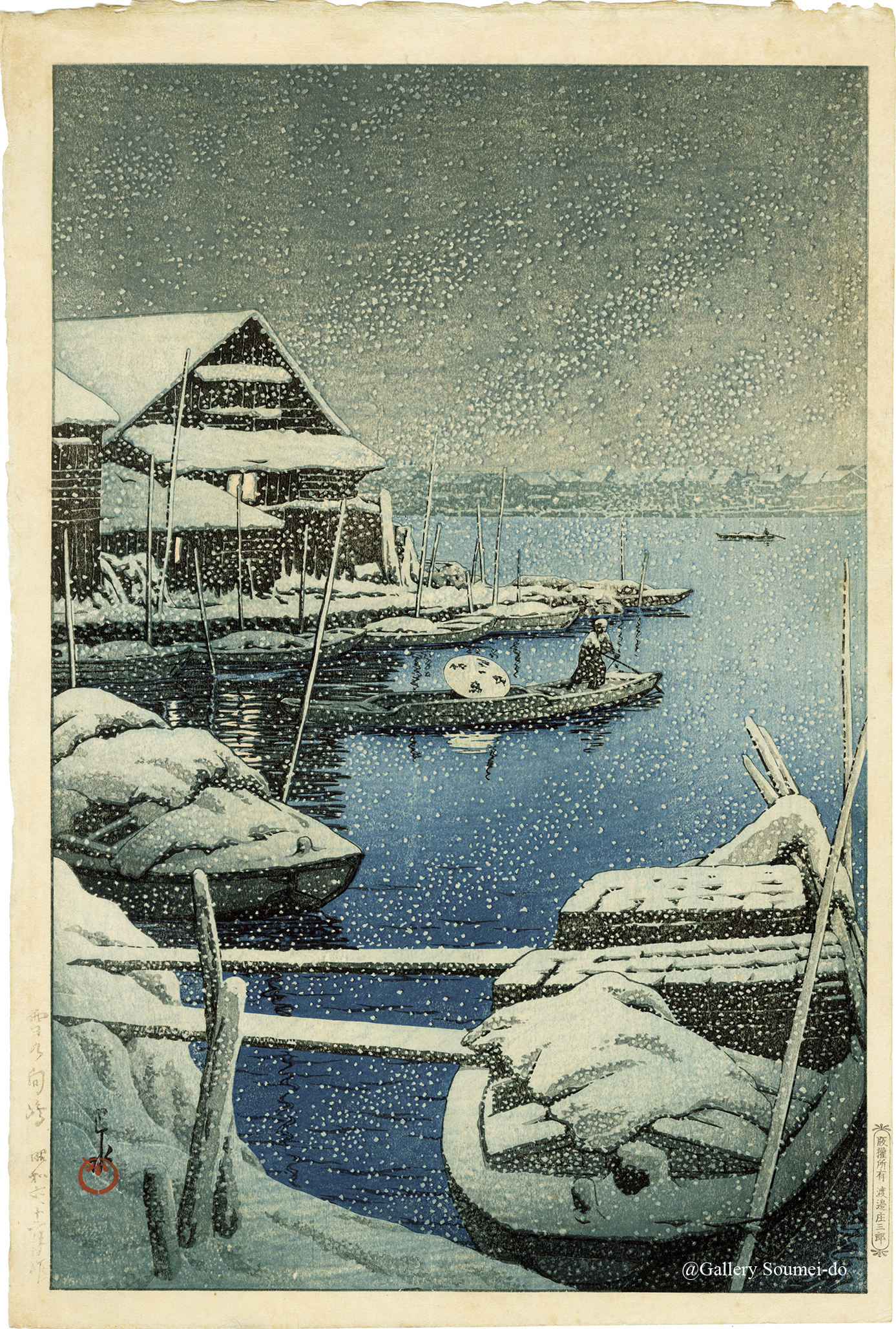 KAWASE Hasui was initially active as a Japanese painter but switched to printmaking artist by being impressed by ITO Shinsui's woodblock artwork "Eight Views of Omi," published in 1918.
